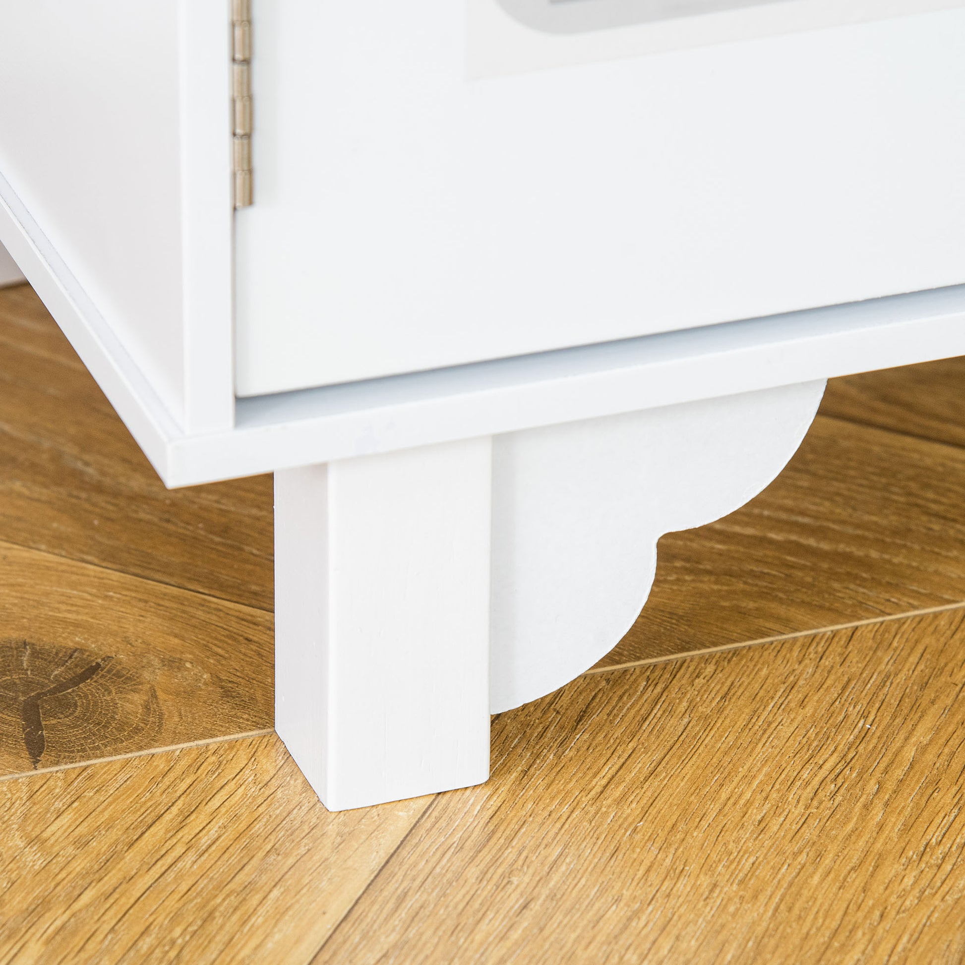 Playtime just got a lot better, thanks to this kids kitchen playset from HOMCOM. Their imagination can run wild as they use the sink, cooking bench, stainless pots and more. Turn the faucet and temperature dials to get their make-believe cooking underway. When playtime's over, store the accessories in the cabinets, keeping your room tidy. Don't worry about getting the set messy – made from MDF, it's easy to clean. The smooth rounded surfaces create a safe environment for your child to play.