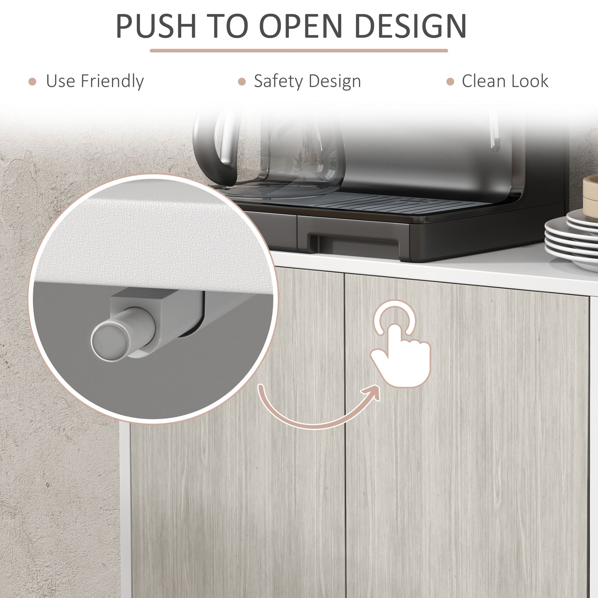 Your home staple, made stylish. Not just a piece to love looking at, but this HOMCOM storage sideboard keeps your home tidy. Four doors open to reveal a middle shelf in the two compartments, creating four individual areas; great for organising crockery, boxes and more. The flat table top is ideal for your favourite pieces, in full display. Show off photos, trinkets and more. The push-open doors are a handy finishing touch.