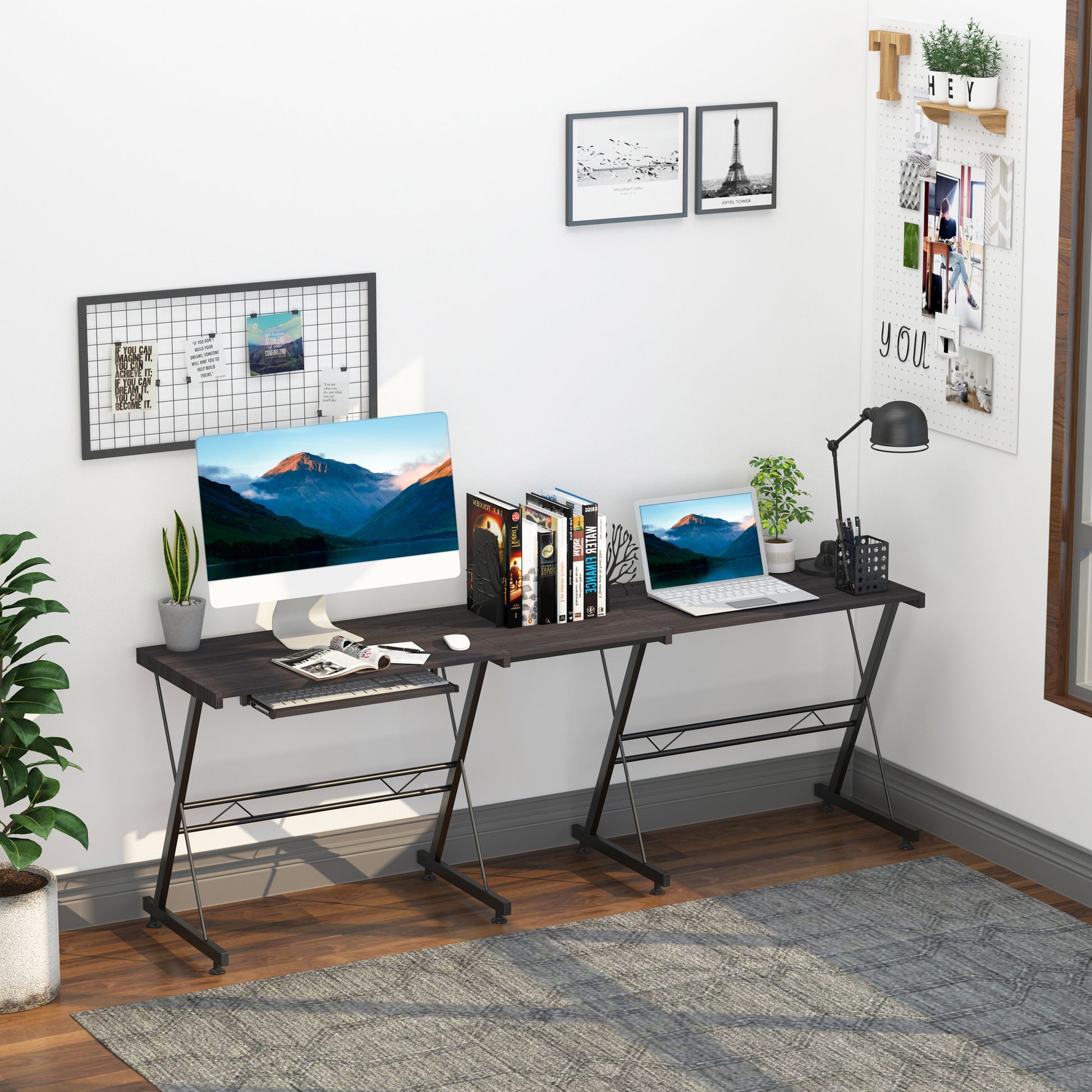 Never be stuck for a desk again thanks to this curved desk from HOMCOM. Made of Z-shape metal frame and solid MDF, the corner pc desk gaming supports up to 20kg. This computer desk features 2 large tabletops, a round corner desk and slide-out keyboard tray for enough workplace. Moreover, straight or L-shape fits in a variety of shaped spaces can meet your different requirements and adjustable feet pads keep stable. The modern desk is a superb addition for every home and office.