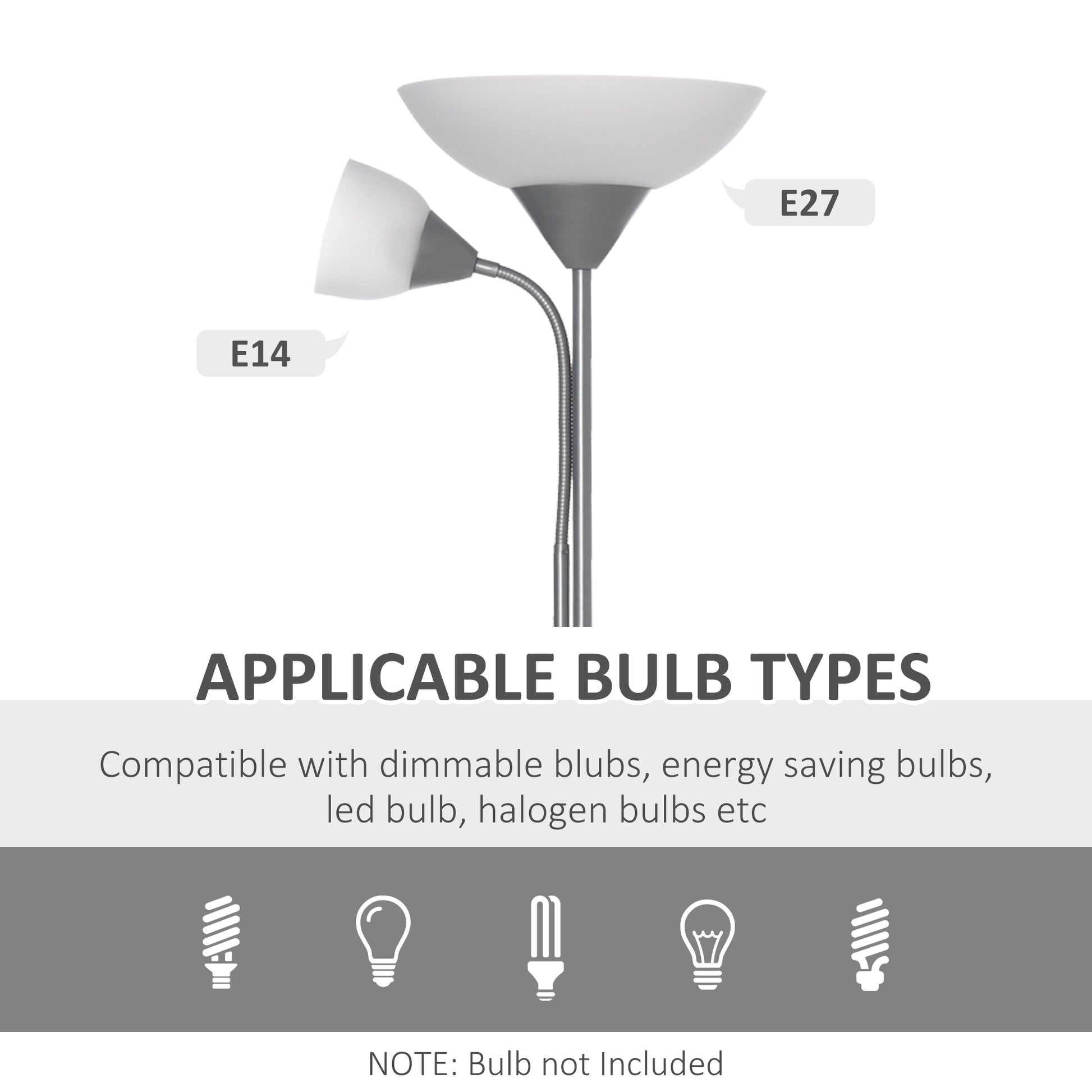 HOMCOM LED Floor Lamp for Living Room, 180cm Tall Standing Lamp, Mother and Child Uplighter with Adjustable Gooseneck, Silver Tone
