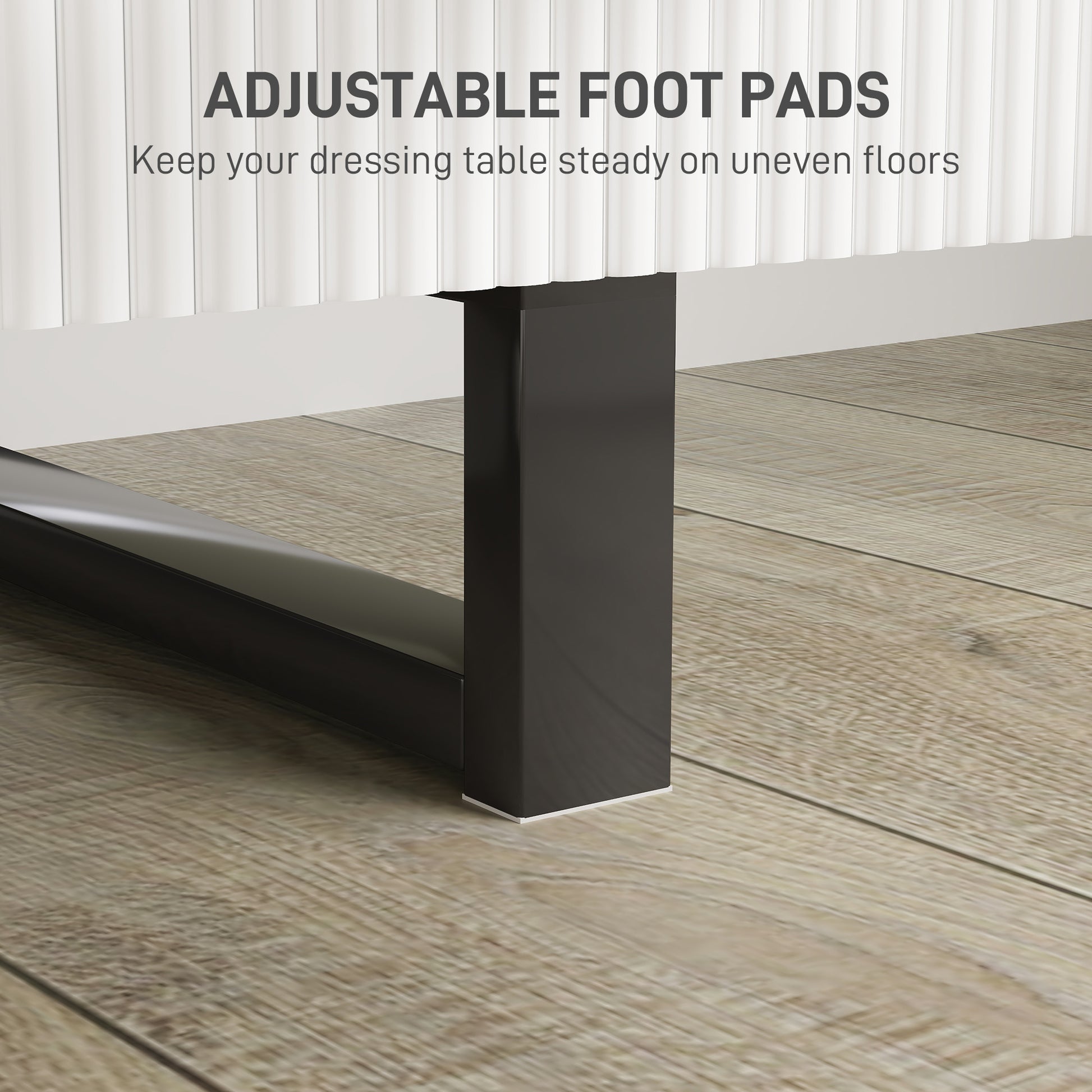 HOMCOM LED Lighted Dressing Table with Leaf Shape Mirror, Modern Vanity Desk with 5 Drawers, Makeup Desk with Fluted Panels, White