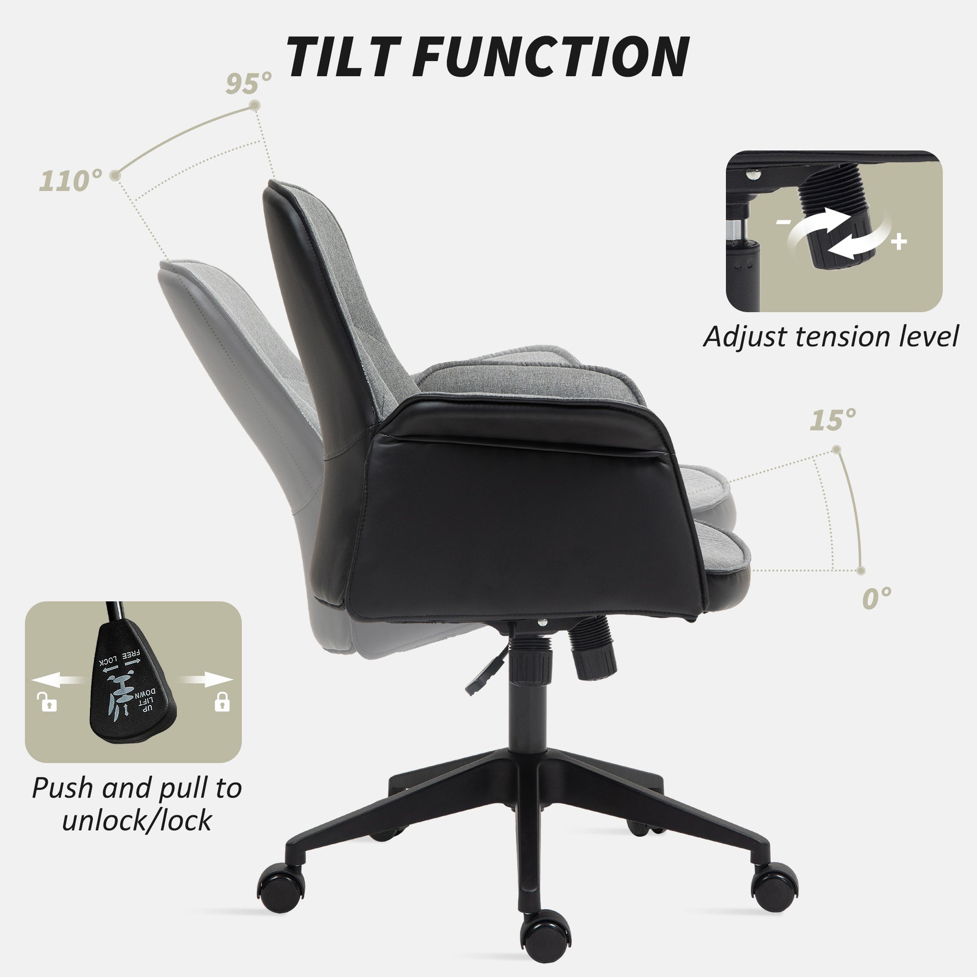 HOMCOM Linen and Faux Leather Mix Office Chair - Grey