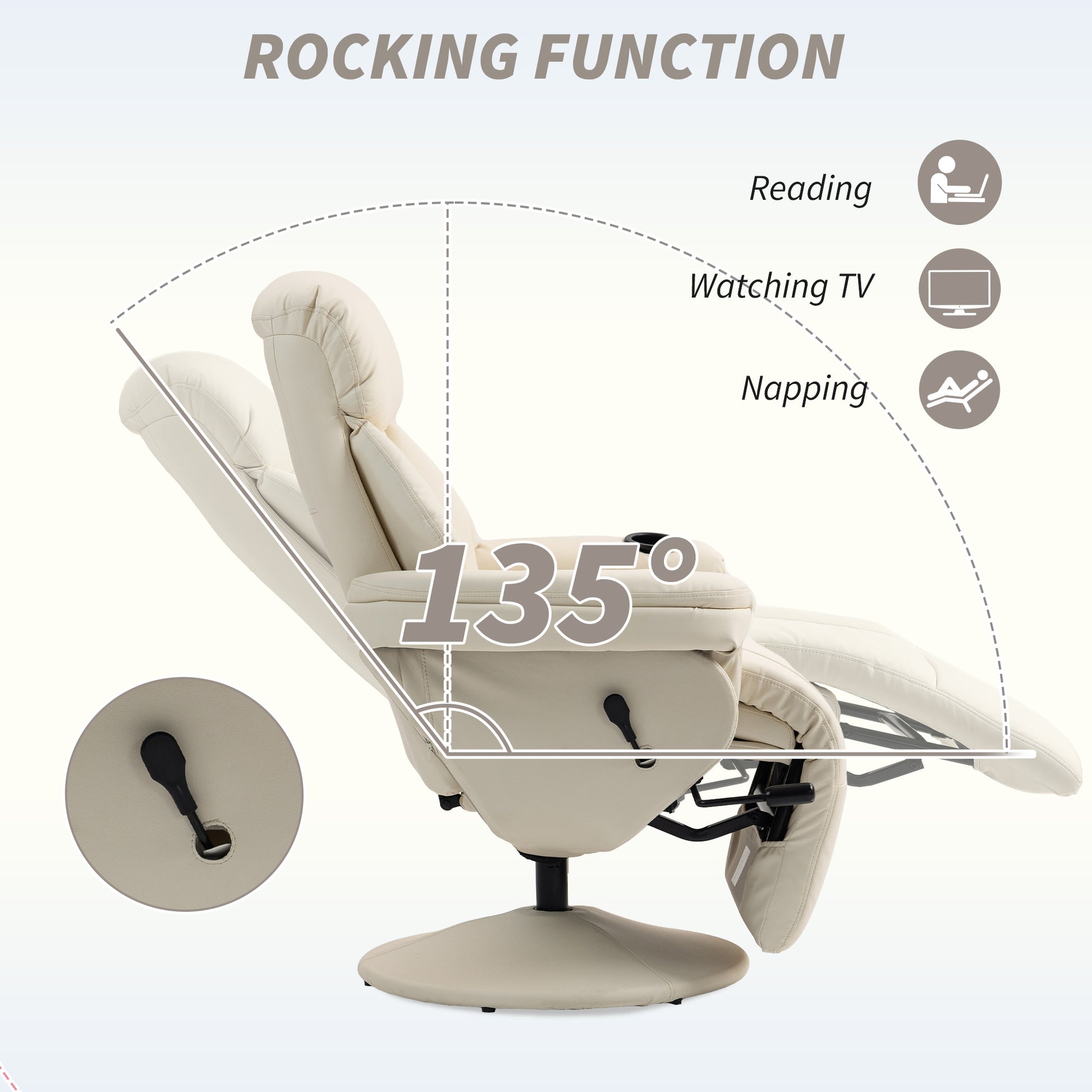 HOMCOM Manual Recliner Chair with Footrest, Upholstered Reclining Armchair with Adjustable Backrest and Cup Holder, PU Leather Swivel Chair for Living Room, Bedroom, Cream White
