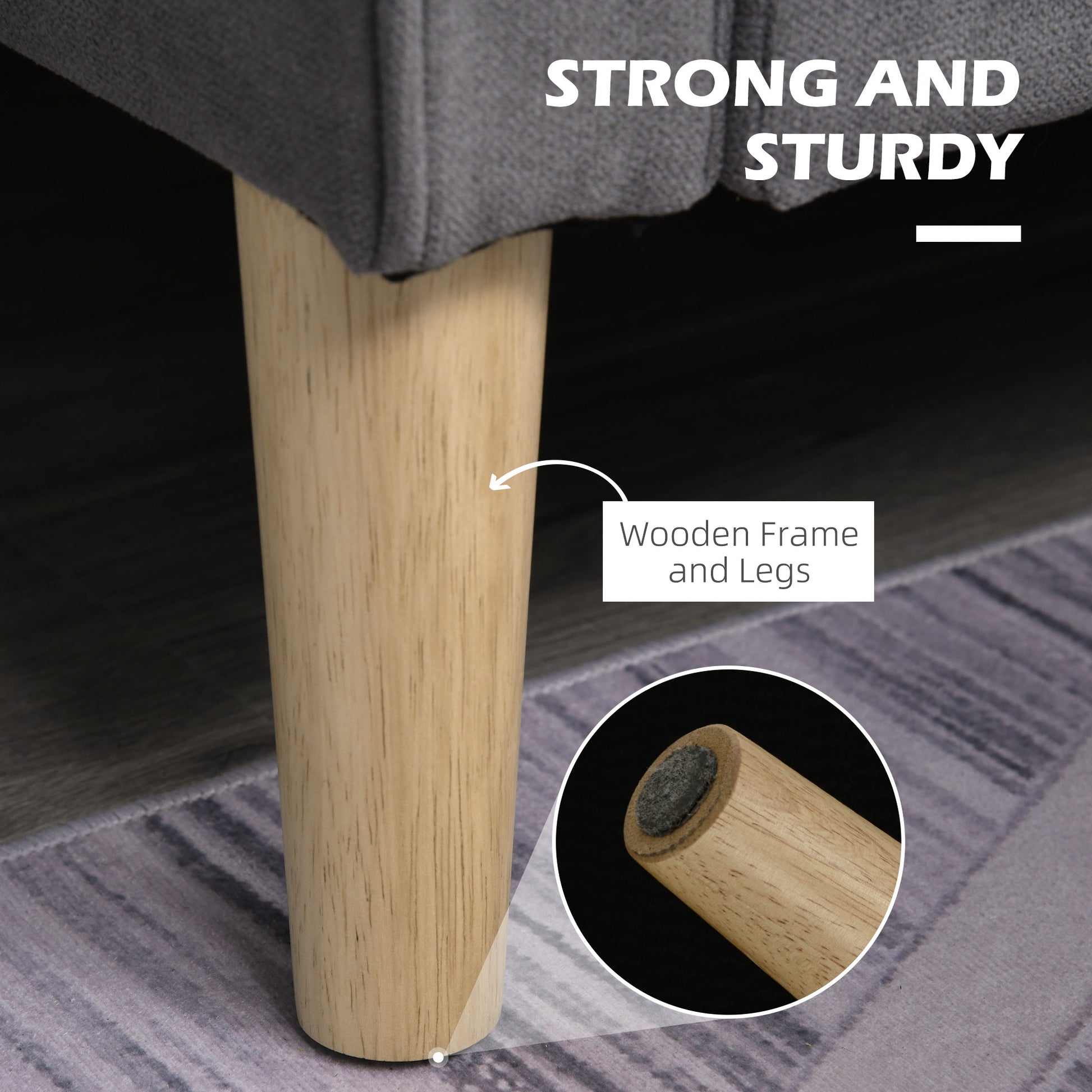 HOMCOM Modern 2 Seater Sofa with Hidden Storage, 117cm Tufted Cotton Couch with Wood Legs, Compact Loveseat for Living Room, Kitchen, Grey