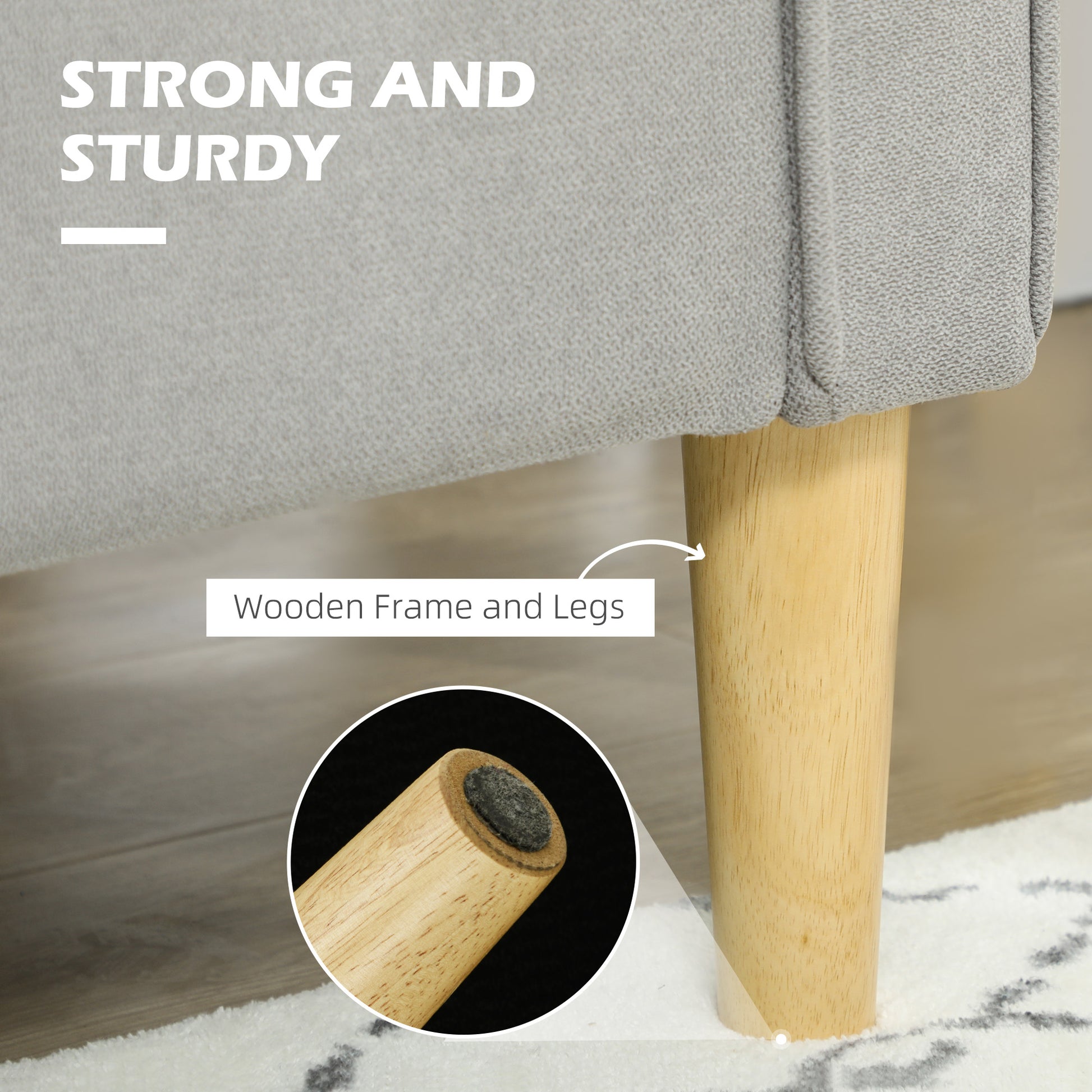 - Eucalyptus wood frame and rubberwood legs ensure a solid structure
