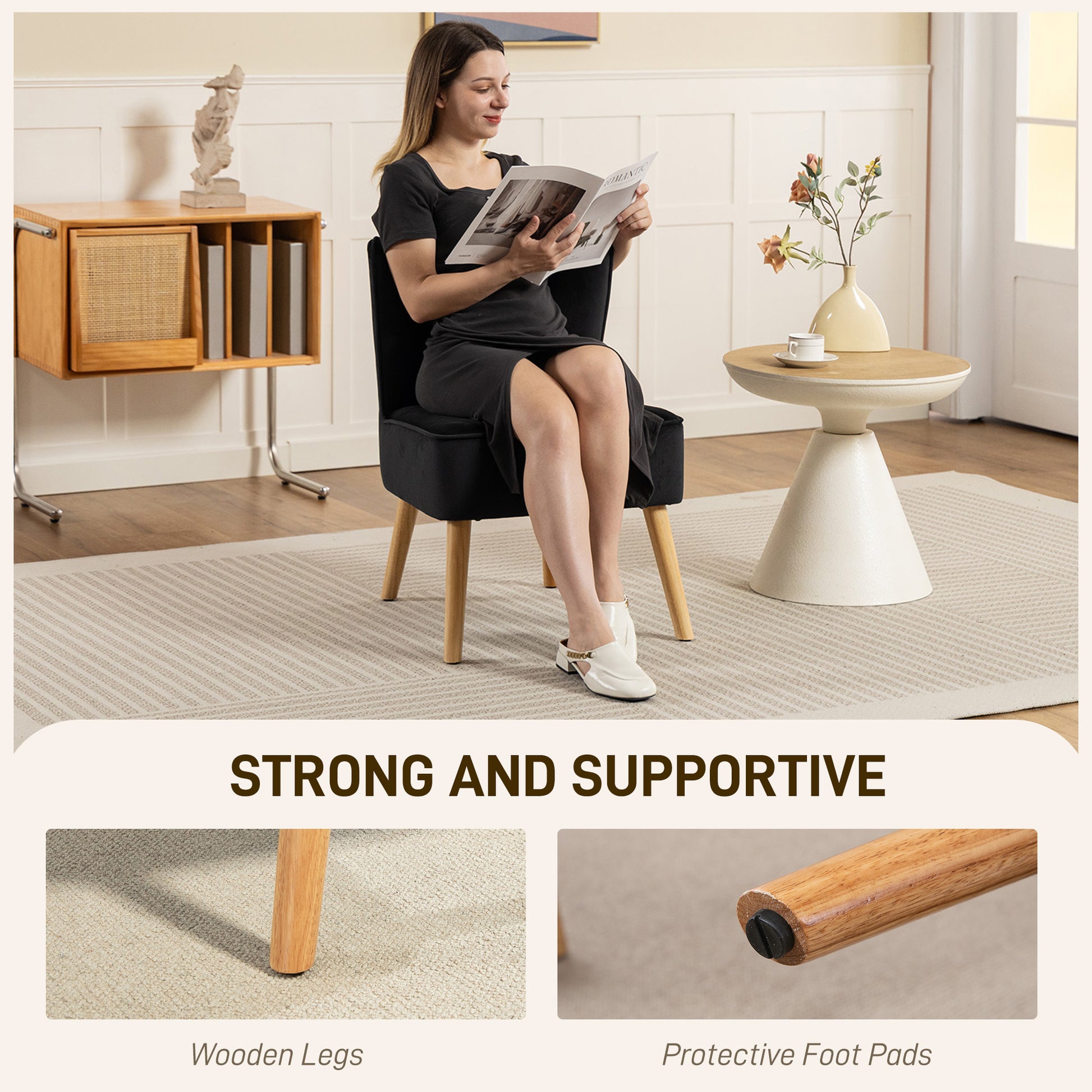 HOMCOM Modern Accent Chair, Fabric Living Room Chair with Rubber Wood Legs and Thick Padding, Black