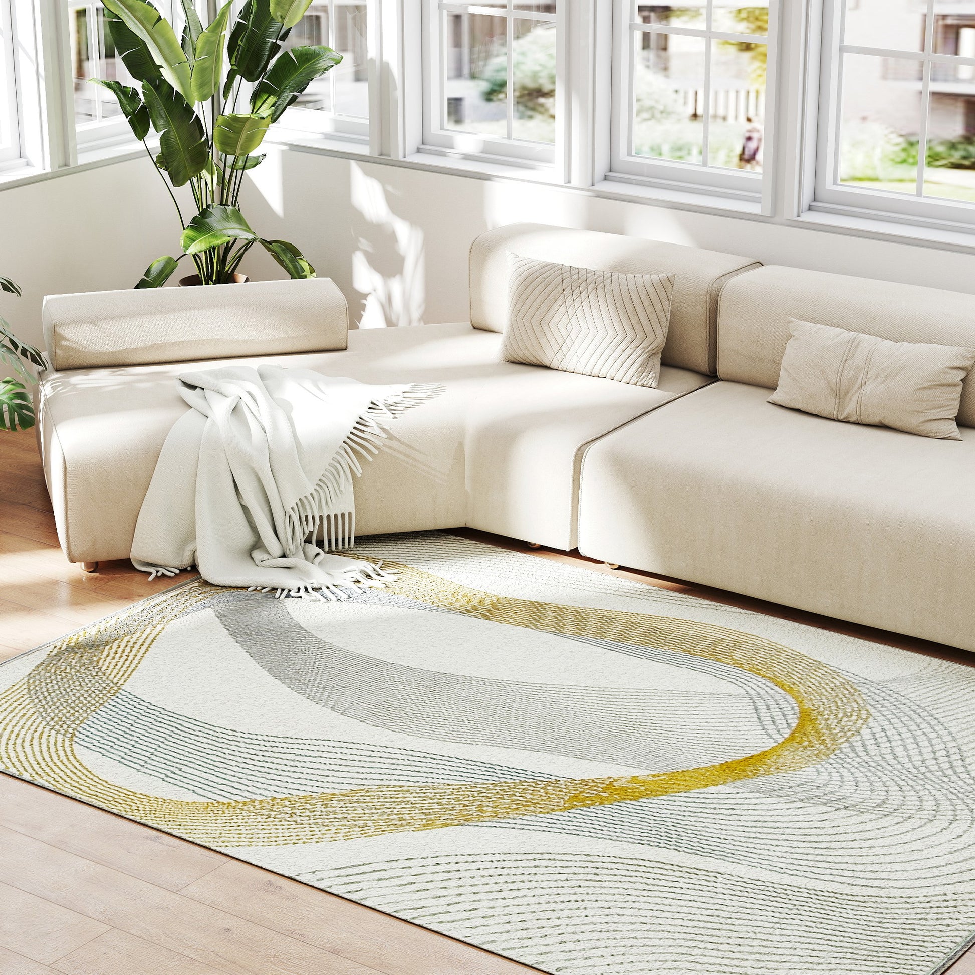 HOMCOM Modern Area Rug, Machine Washable Rug, Allergy-Friendly Floor Carpet for Living Room, Bedroom, Dining Room, Home Office, 170 x 120 cm, Cream White
