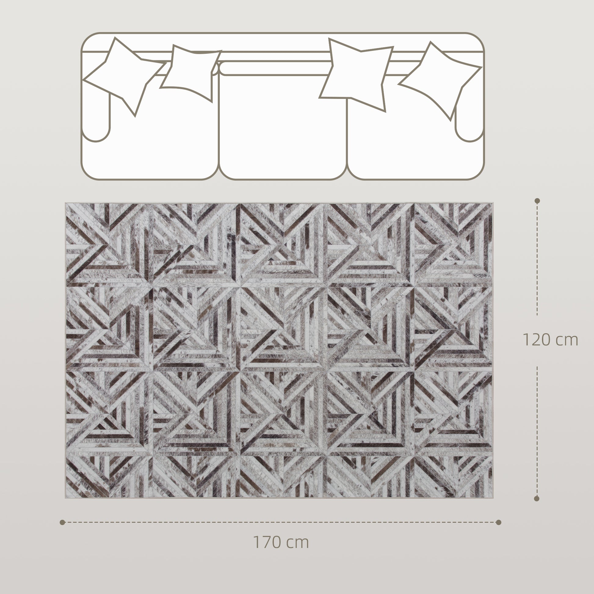HOMCOM Modern Area Rug, Triangle Pattern Non-Slip Washable Rug, Chenille Floor Carpet for Living Room, Bedroom, Dining Room, Home Office, 170 x 120 cm, Brown