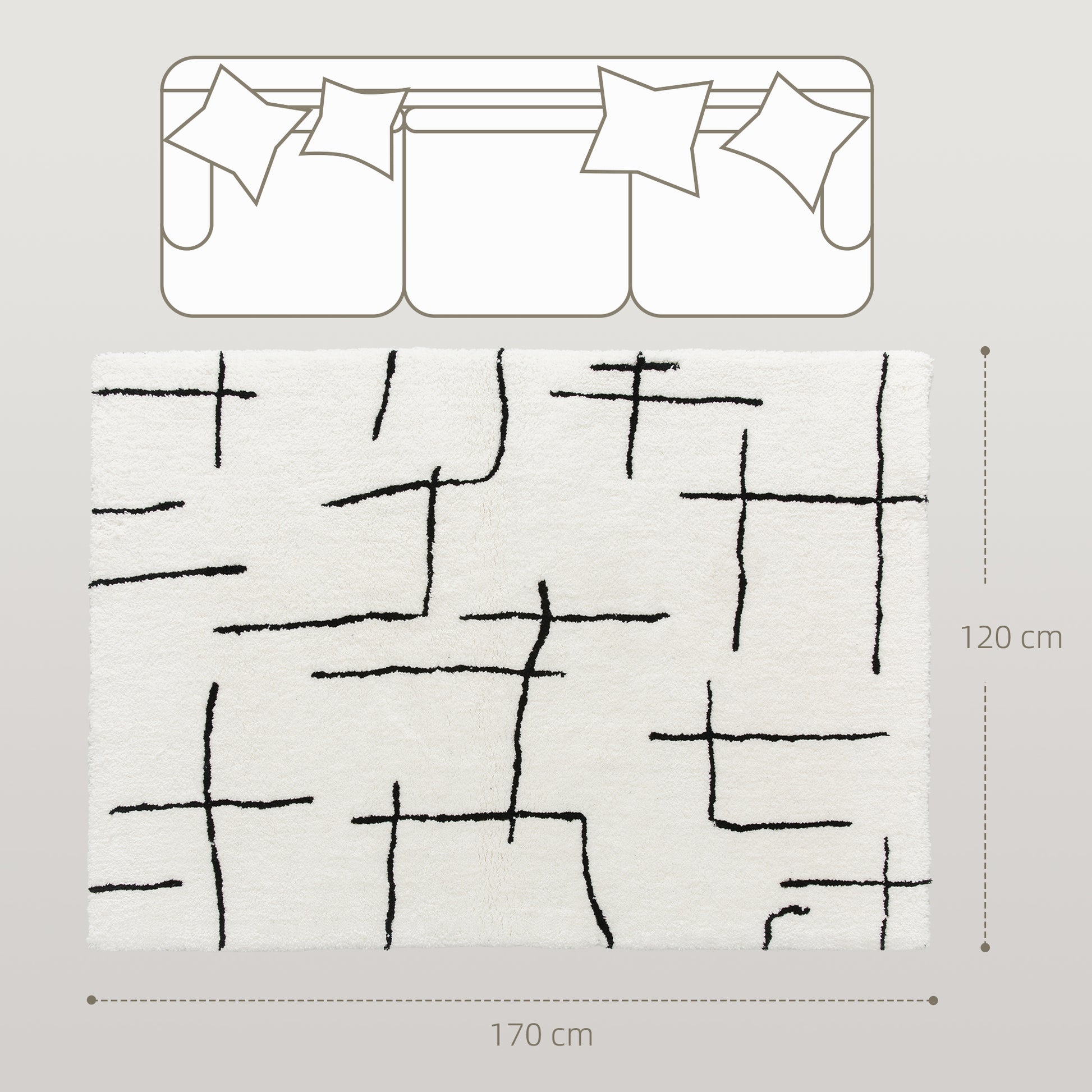 Transform your home into a haven of comfort and style with the HOMCOM area rug. Crafted from 100% polyester, its plush texture invites relaxation, making it great for any space. The cream base with abstract black lines adds a modern touch, effortlessly enhancing living rooms or social areas. This versatile large rug fits seamlessly into bedrooms, hallways, or cosy corners.
