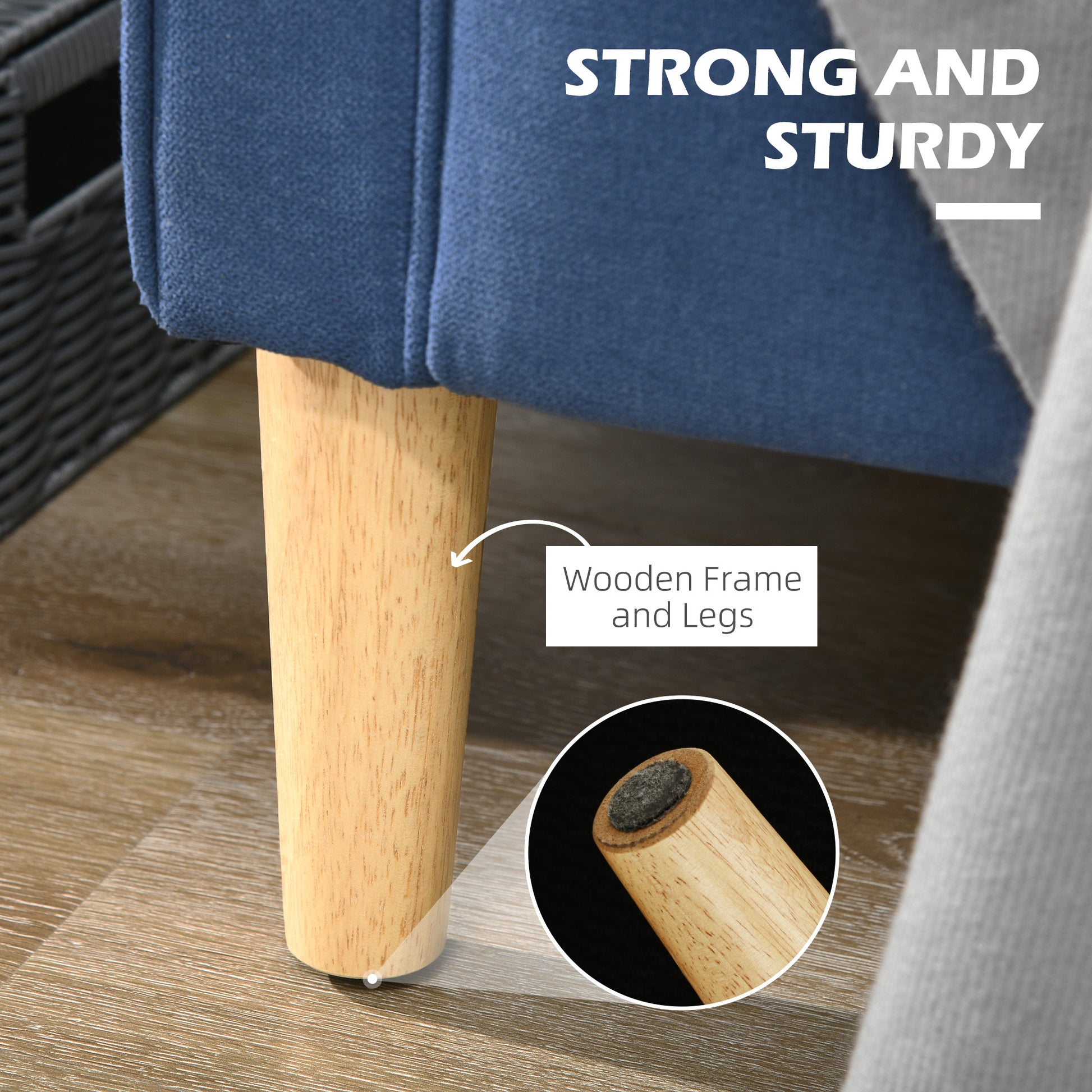 HOMCOM Modern Loveseat Sofa, Compact 2 Seater Sofa with Hidden Storage, 117cm Tufted Cotton Couch with Wood Legs, Blue