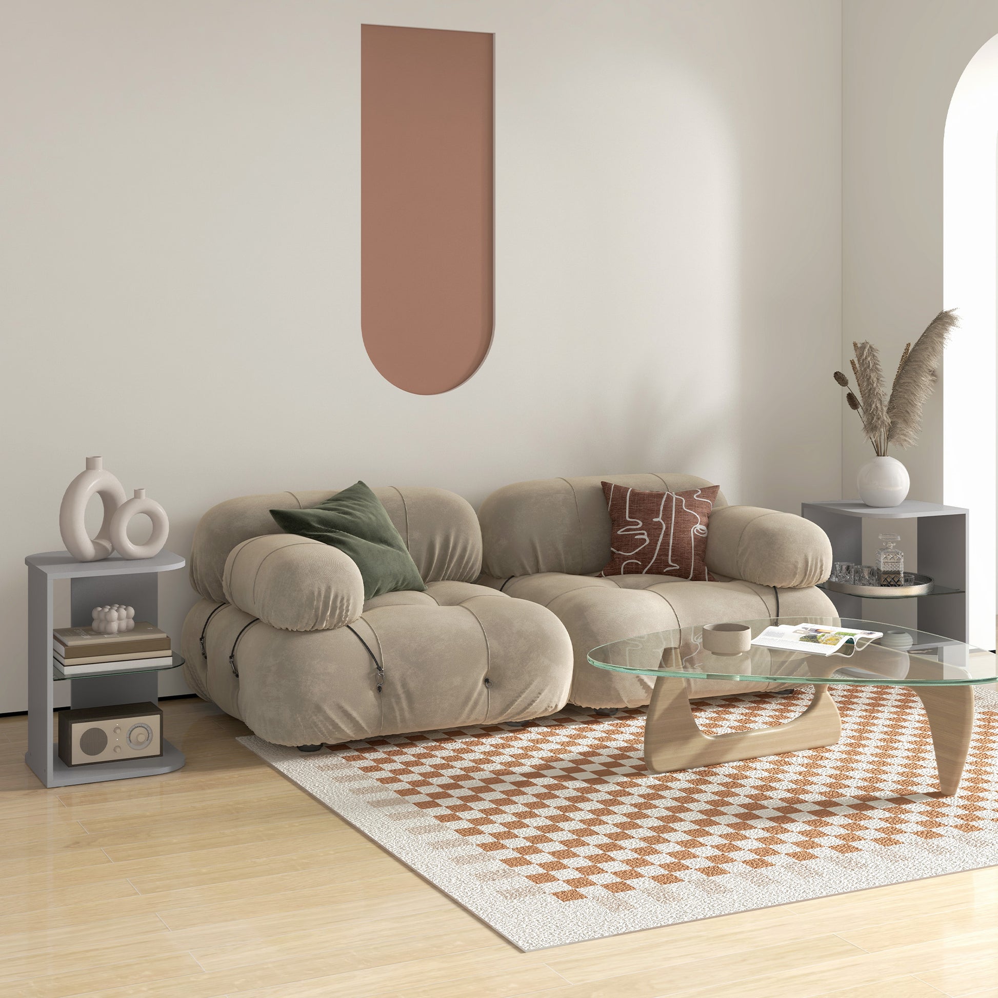 HOMCOM Modern Side Table Set of 2, Three Layer Bedside Table Nightstand with 2 Storage Shelves, for Living room, Bedroom, Grey