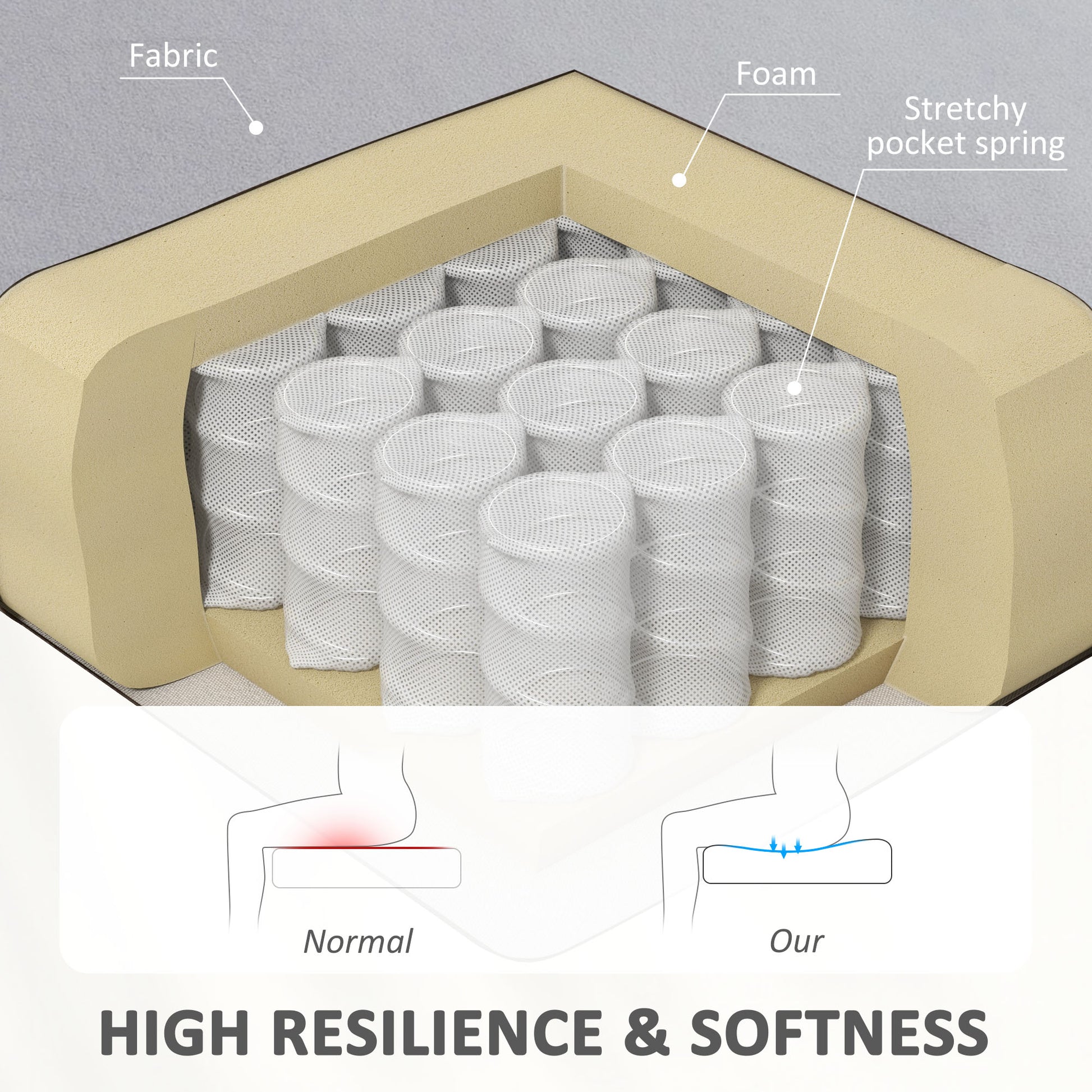 - Thick padding with pocket springs for extra comfort and durability