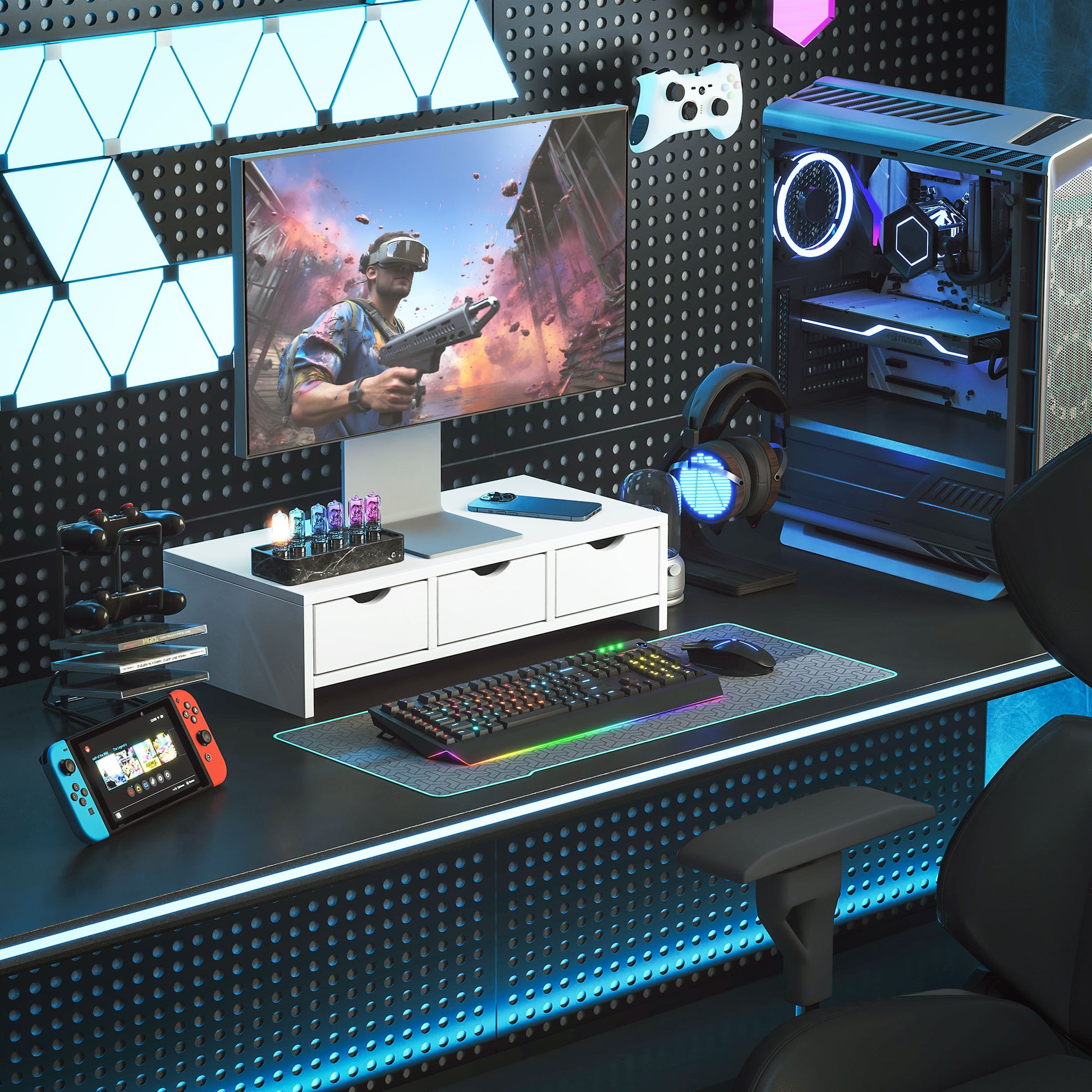 HOMCOM Monitor Stand Riser with 3 Drawers, Monitor Riser for Laptop, Computer, PC, Small Printer, 51 x 24 x 13cm, White