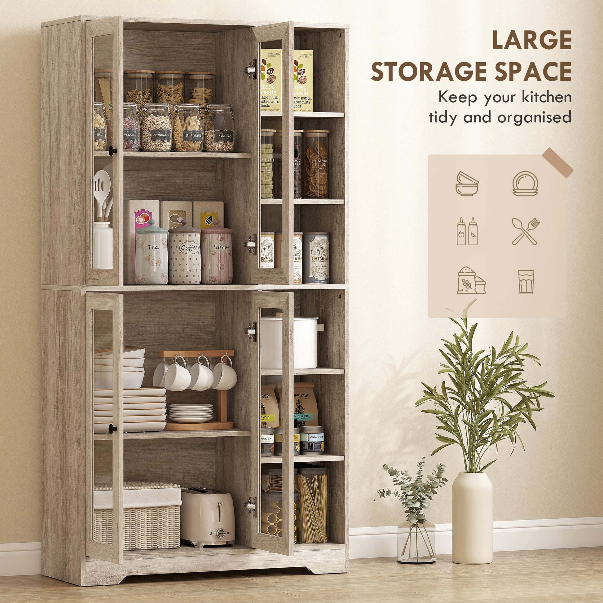 HOMCOM Multi-Storage Kitchen Cabinet, with Glass Doors - Grey Wood-Effect