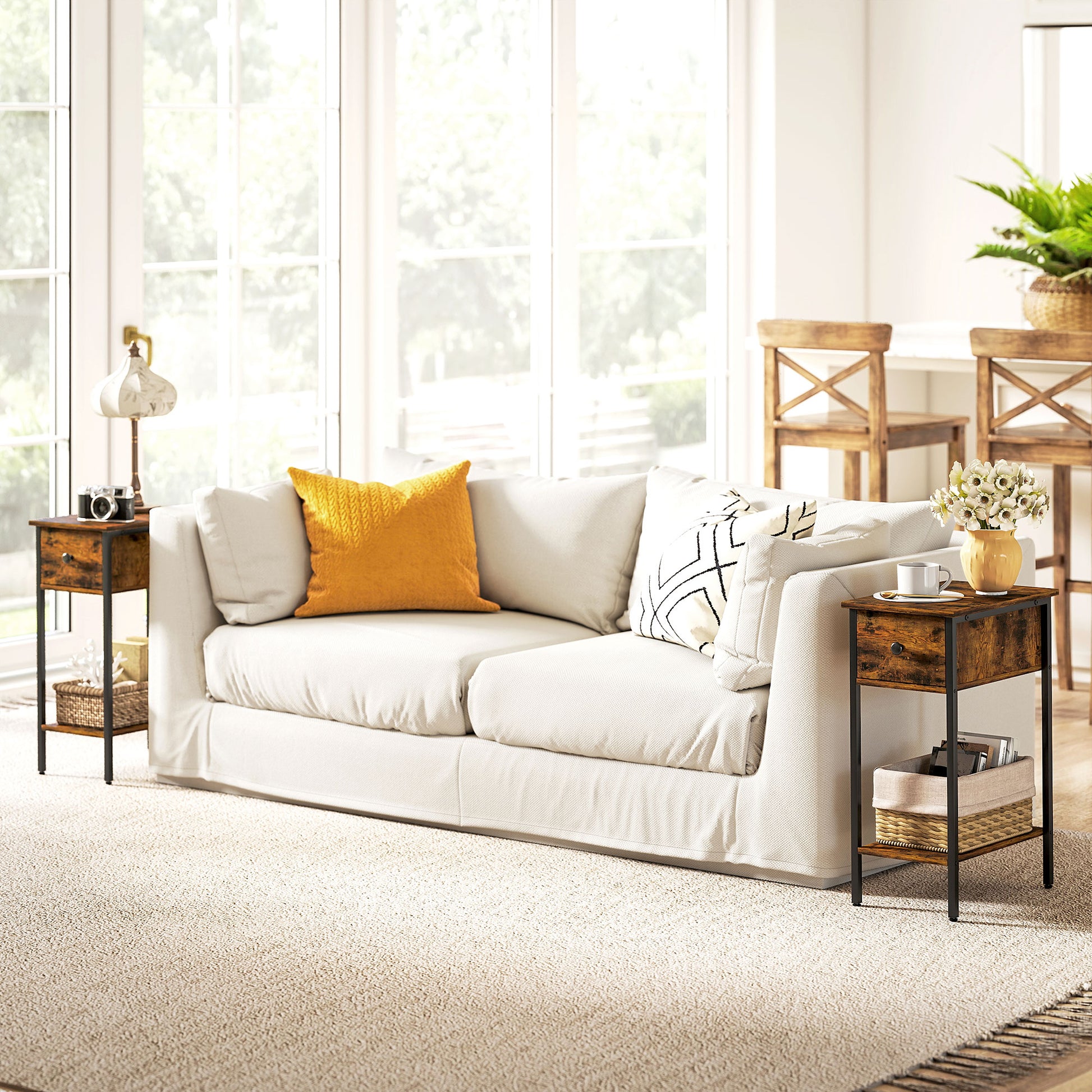 Discover the charm of the slim side table from HOMCOM, where functionality meets flair. Its compact design features a handy drawer and open shelf, great for tucking away bits and bobs. The industrial-style rustic brown panels and sleek black frame add a dash of sophistication to any room, be it as a bedside table, end table, or a quaint small coffee table.