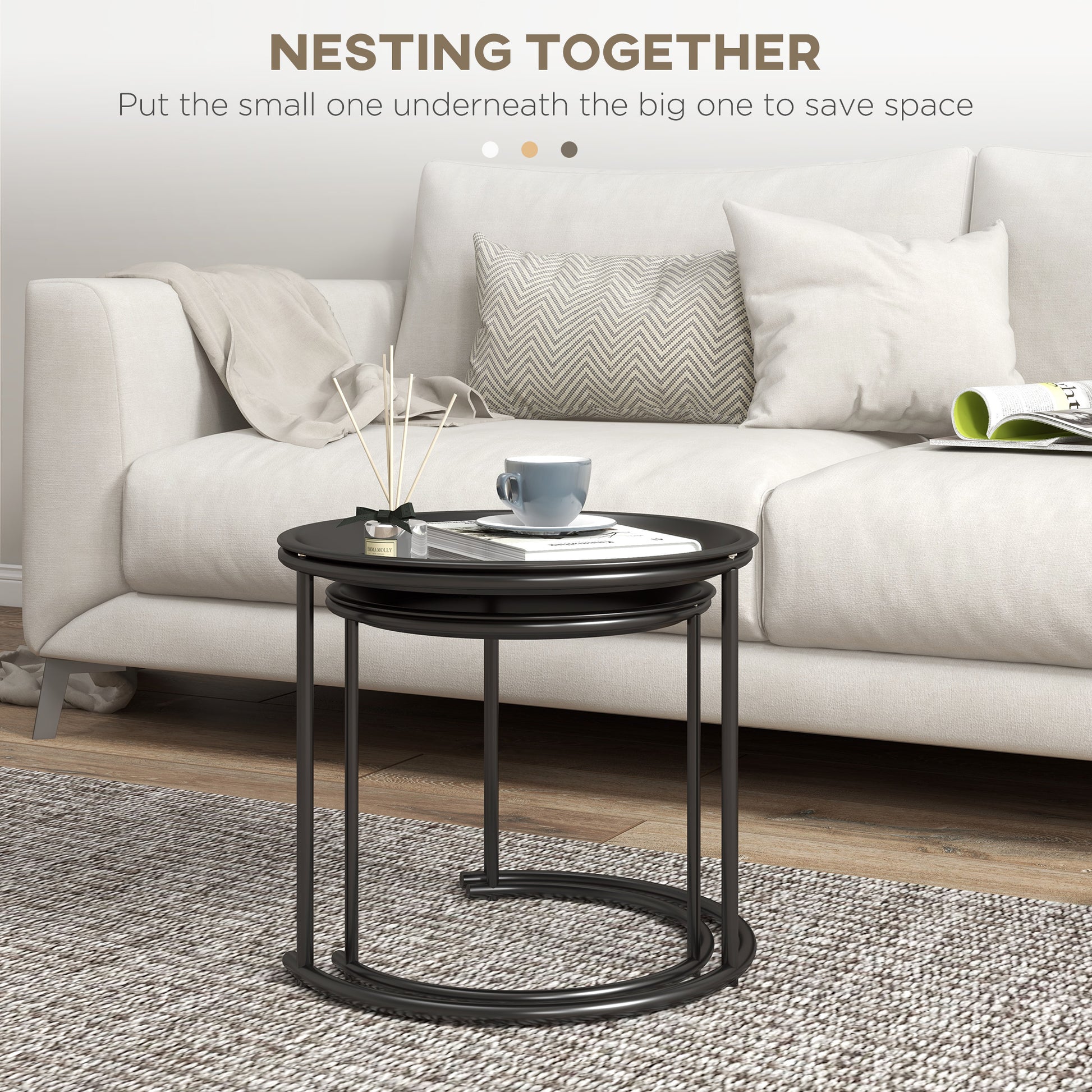 HOMCOM Nesting Tables Set of 2, Side End Table with Removable Tabletop Tray and Steel Frame for Living Room, Bedroom, Black