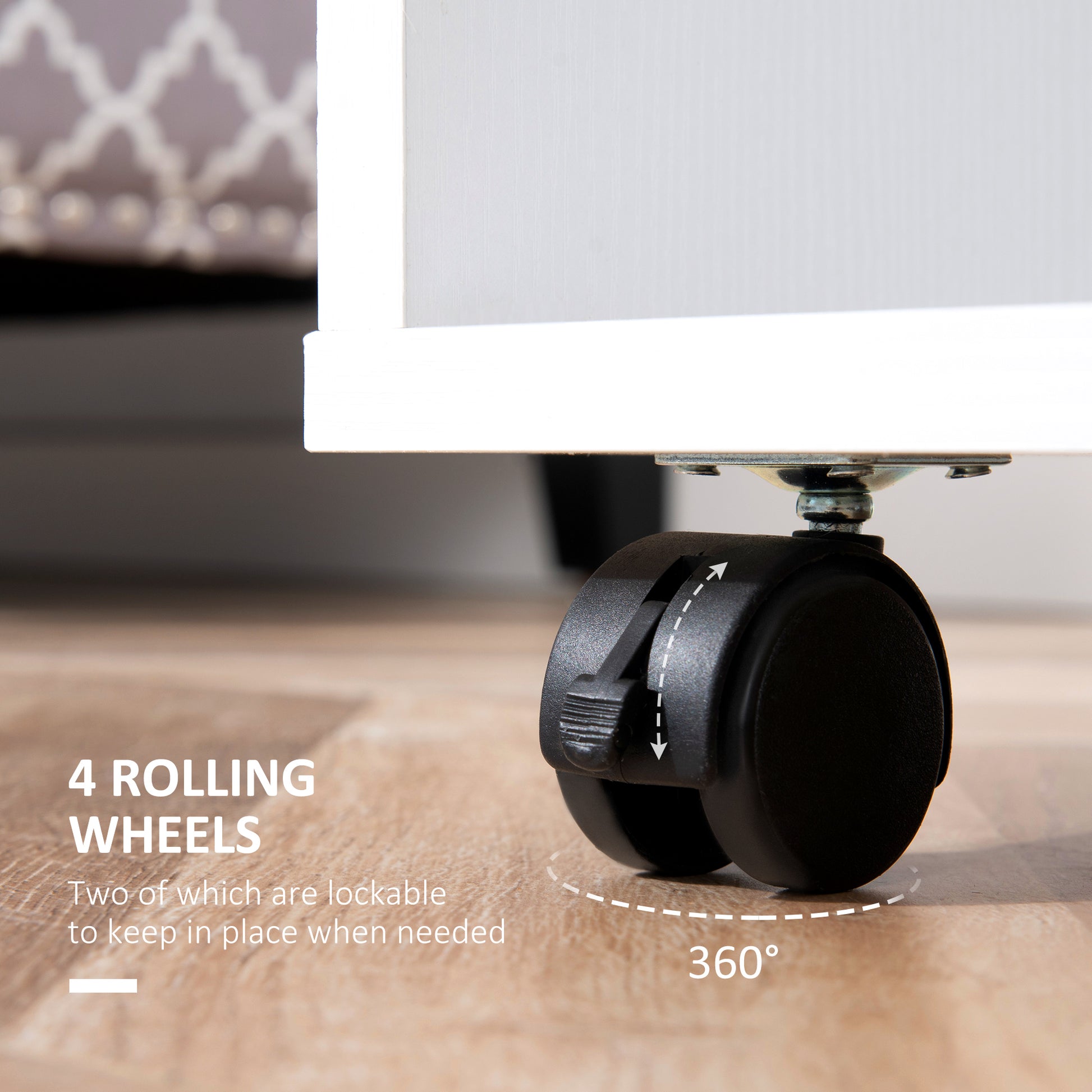 HOMCOM Open Wardrobe on Wheels, Bedroom Wardrobe with Clothes Hanging Rail, 2 Storage Shelves, Mobile Garment Rack for Cloakroom, Hallway, White