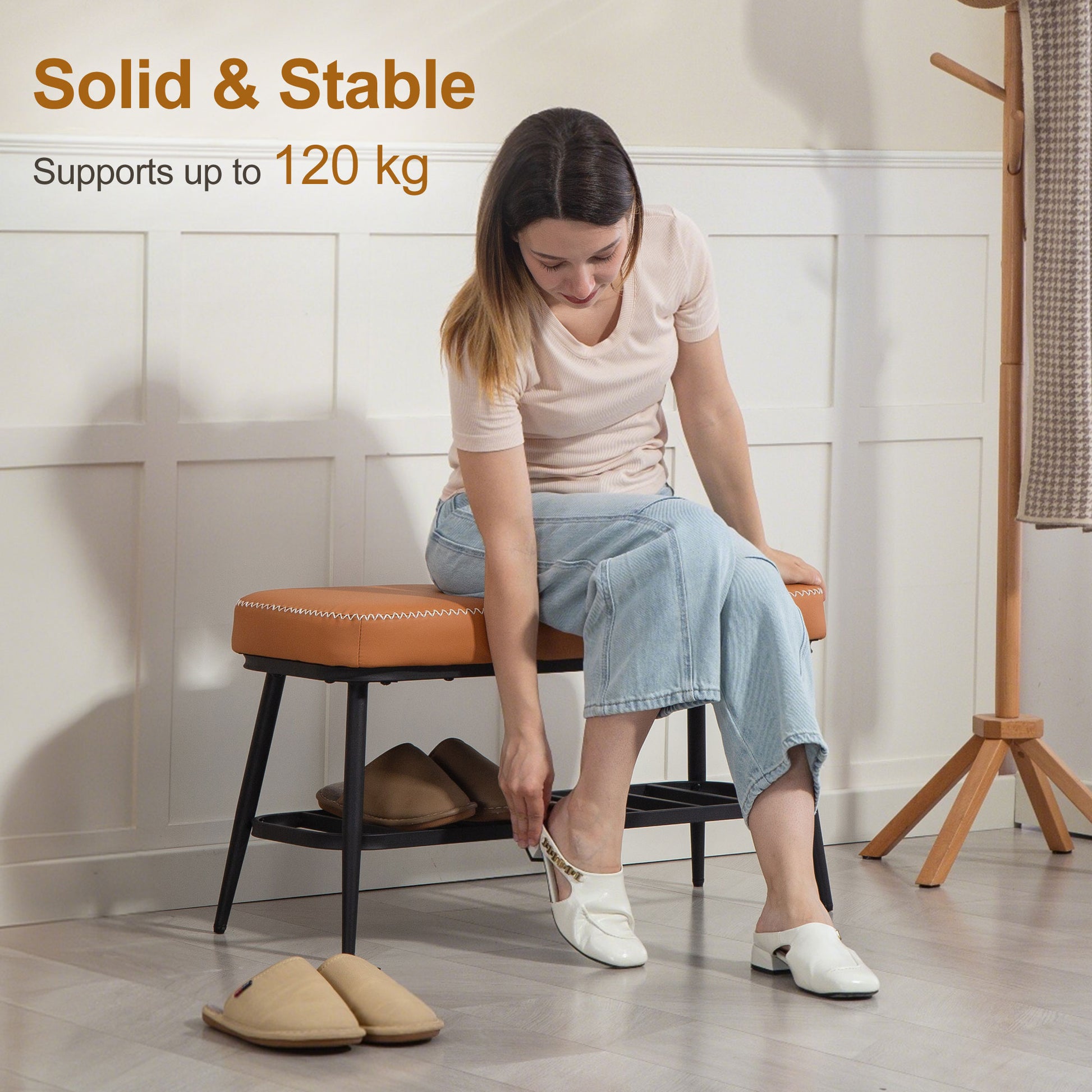 HOMCOM PU Leather Shoe Storage Bench - Brown