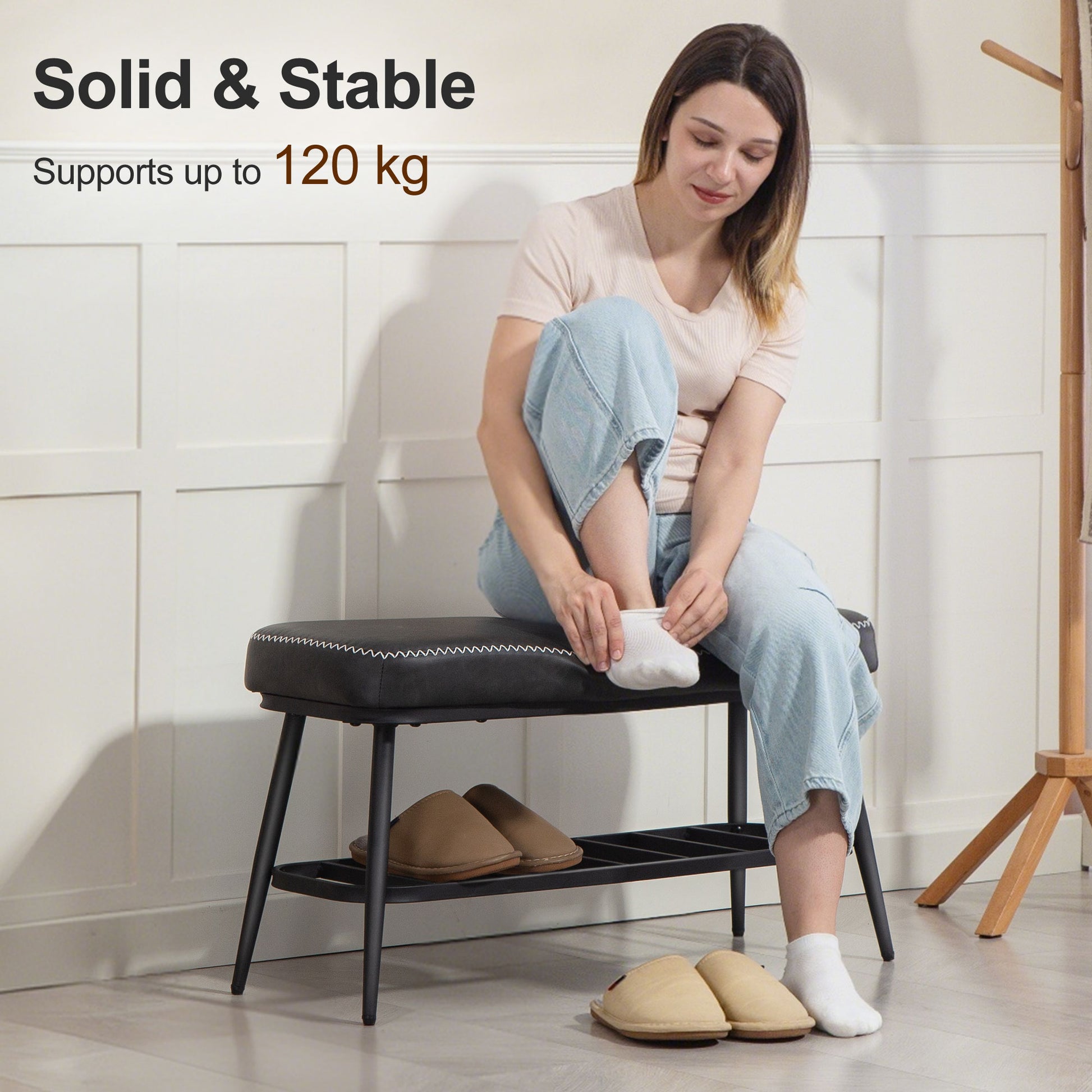 HOMCOM PU Leather Shoe Storage Bench - Charcoal Grey