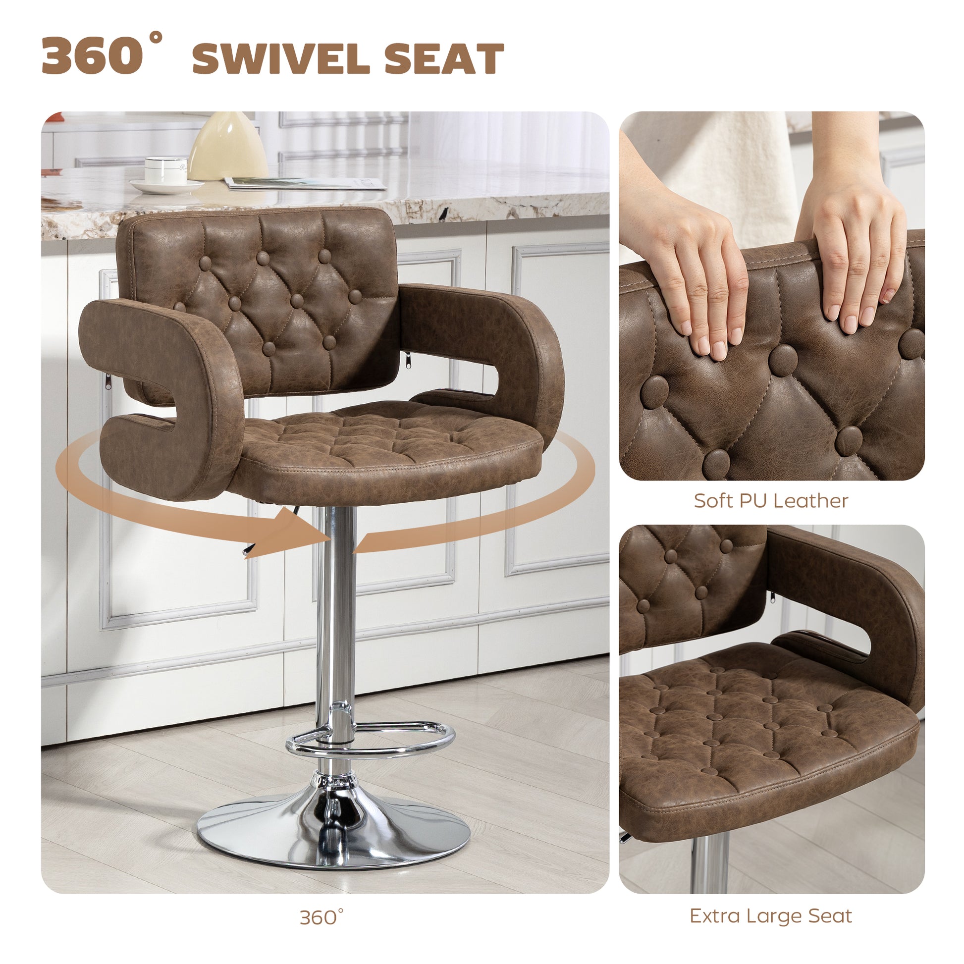 HOMCOM PU Leather Upholstered Swivel Bar Stool, Height Adjustable with Back, Armrest, Footrest, Coffee