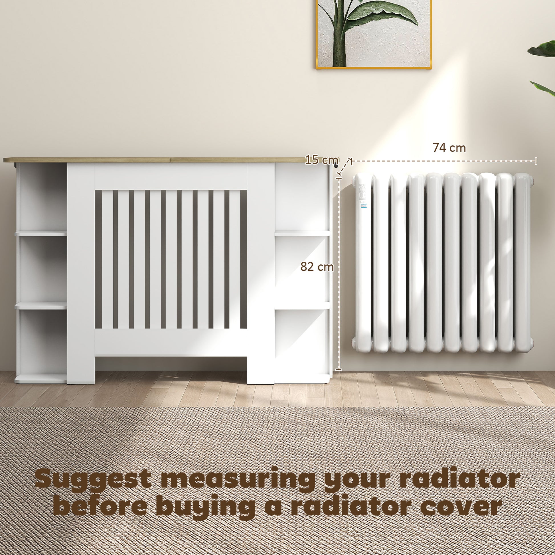 HOMCOM Radiator Cover with Open Storage Shelves, Vertical Slatted Cabinet Shelf Heater Cover for Living Room, Hallway, Medium, White (H: 83 / W: 124 / D: 19 cm)