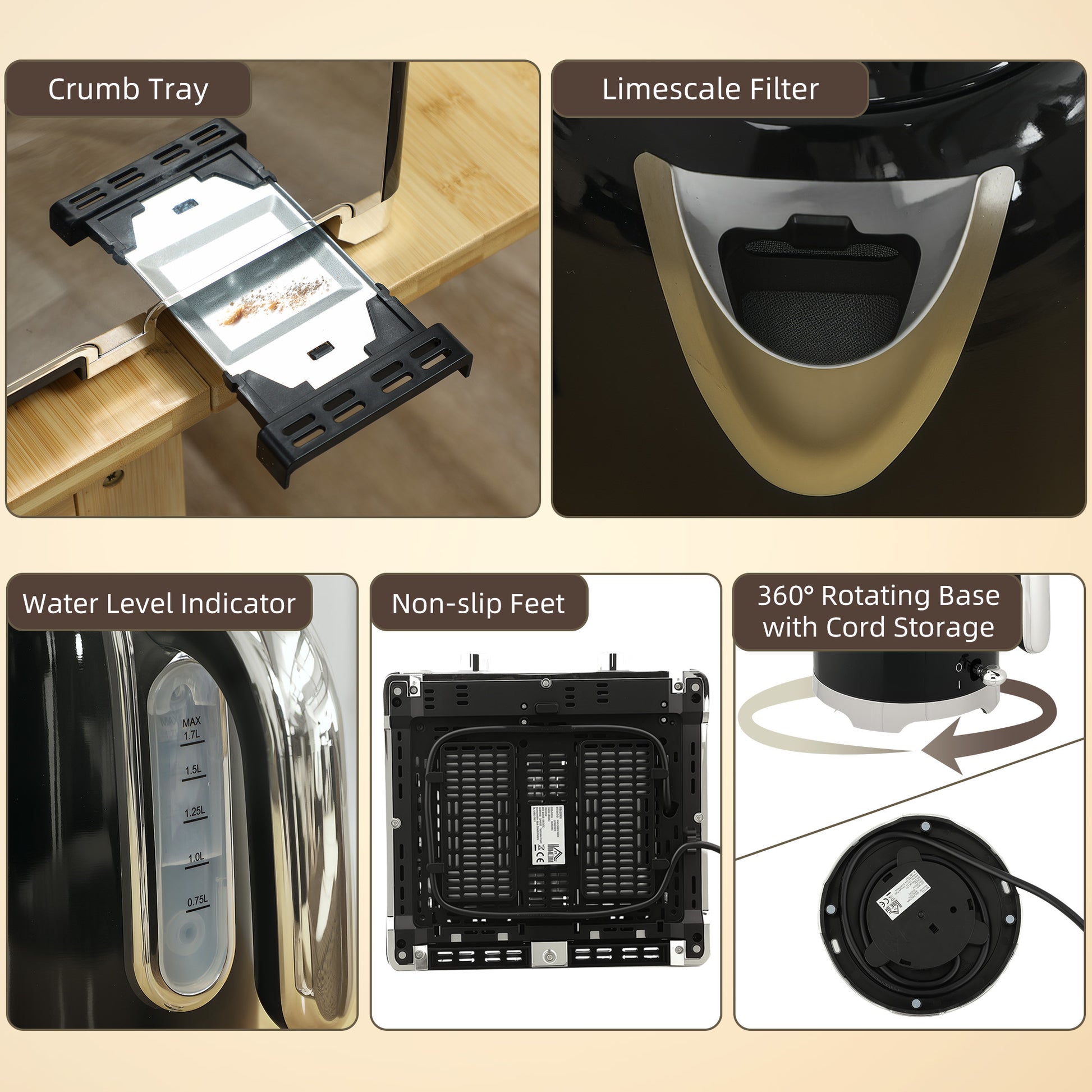 HOMCOM Retro 3000W Kettle and Toaster Set - Black