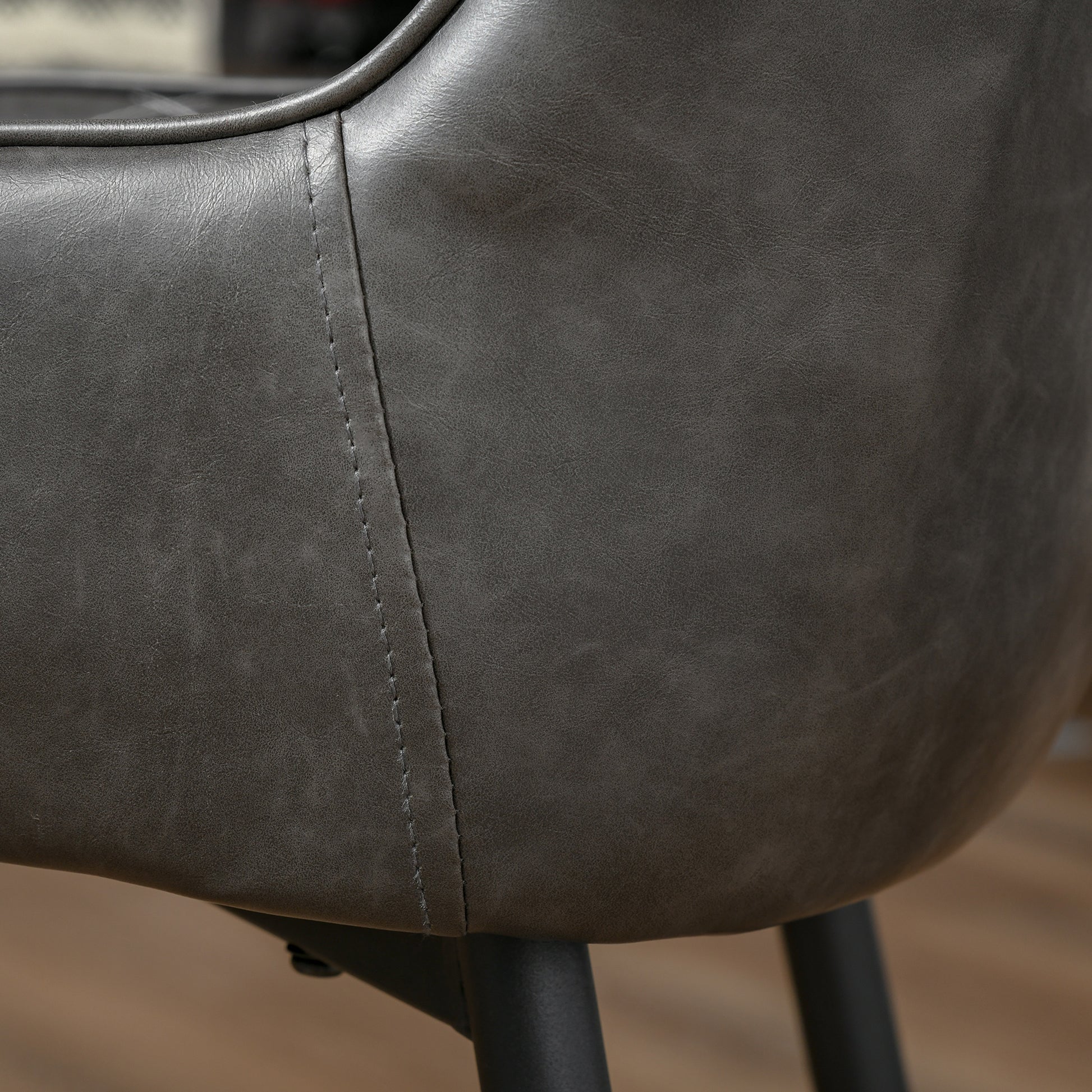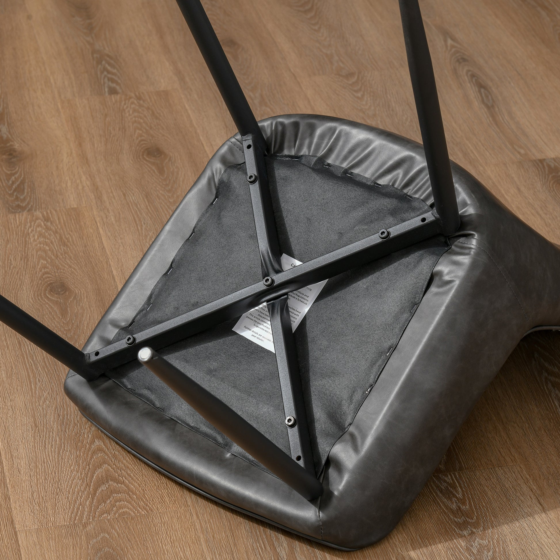 HOMCOM Retro Dining Chair Set of 4, PU Leather Upholstered Side Chairs for Kitchen Living Room with Metal Legs, Grey