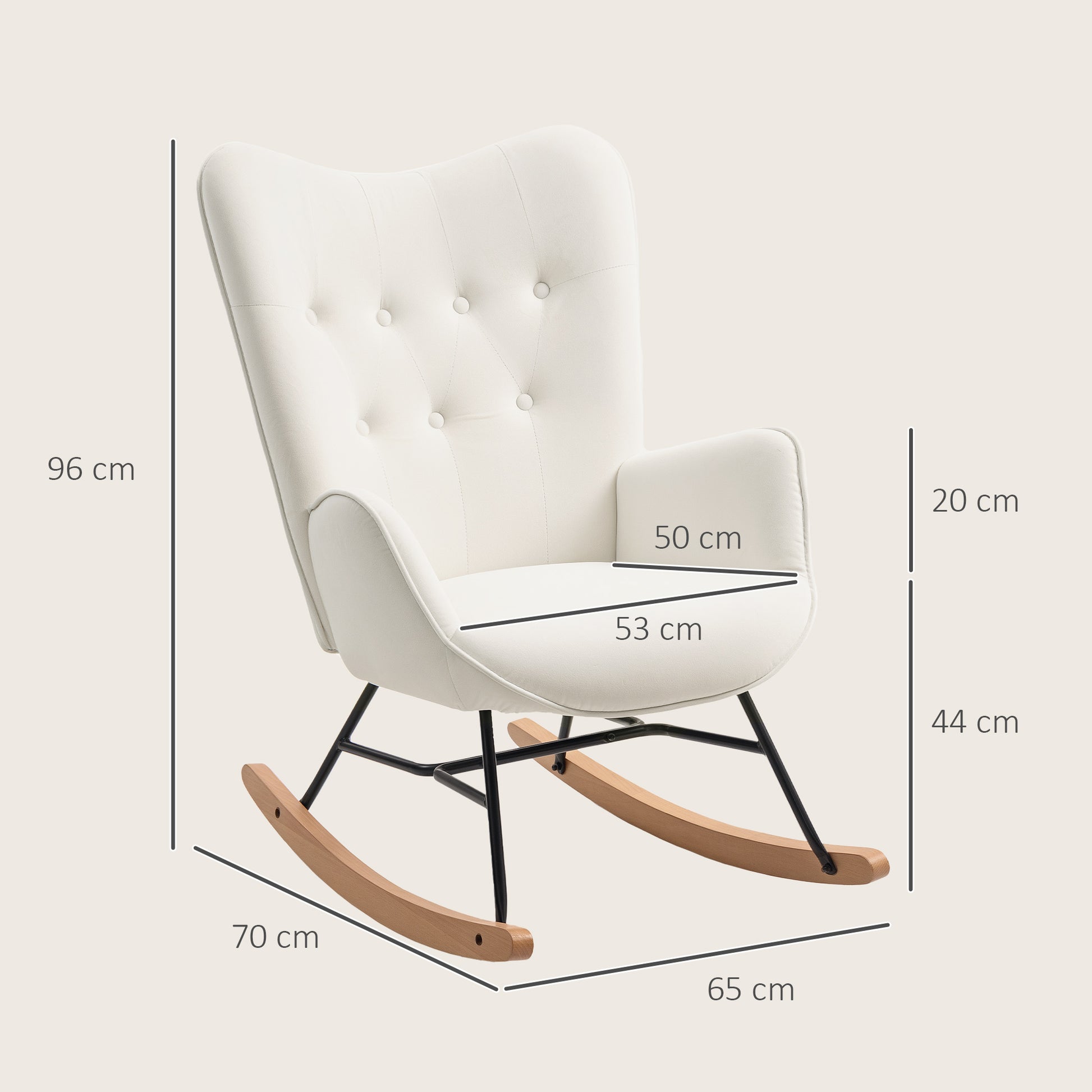 HOMCOM Rocking Chair, Modern Upholstered Velvet Armchair with Solid Wood Legs and Metal Frame for Living Room, Bedroom, Cream