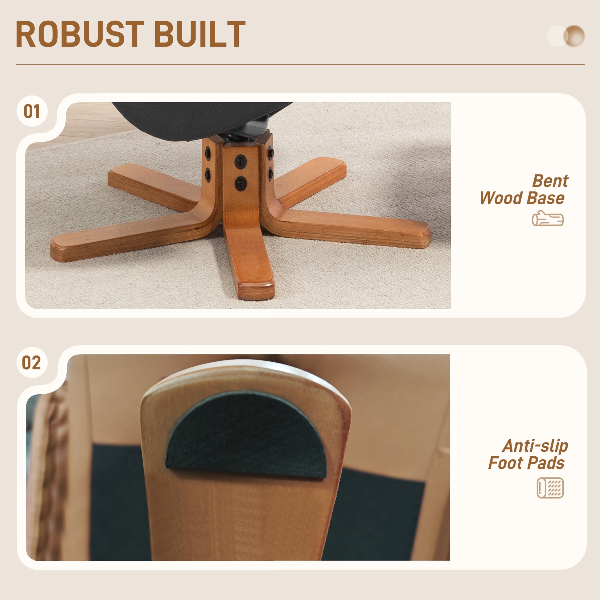 HOMCOM Rocking Recliner Chair with Footstool, PU Leather Recliner Armchair with Wood Base, Upholstered Reclining Chair for Living Room Bedroom, Black