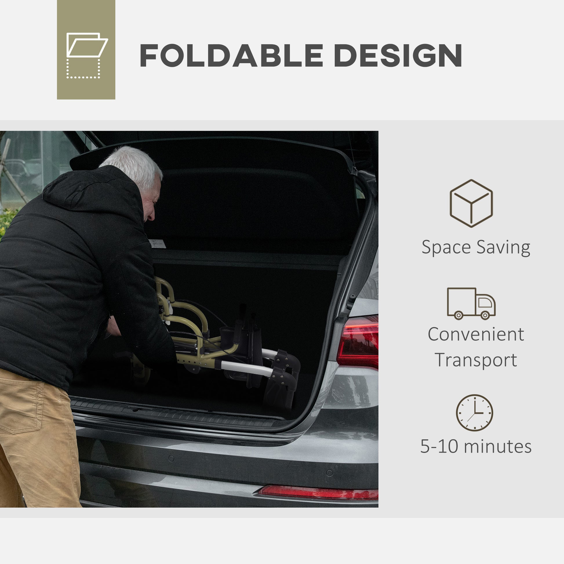 - Doubles as a wheelchair or a rollator walker with seat and back