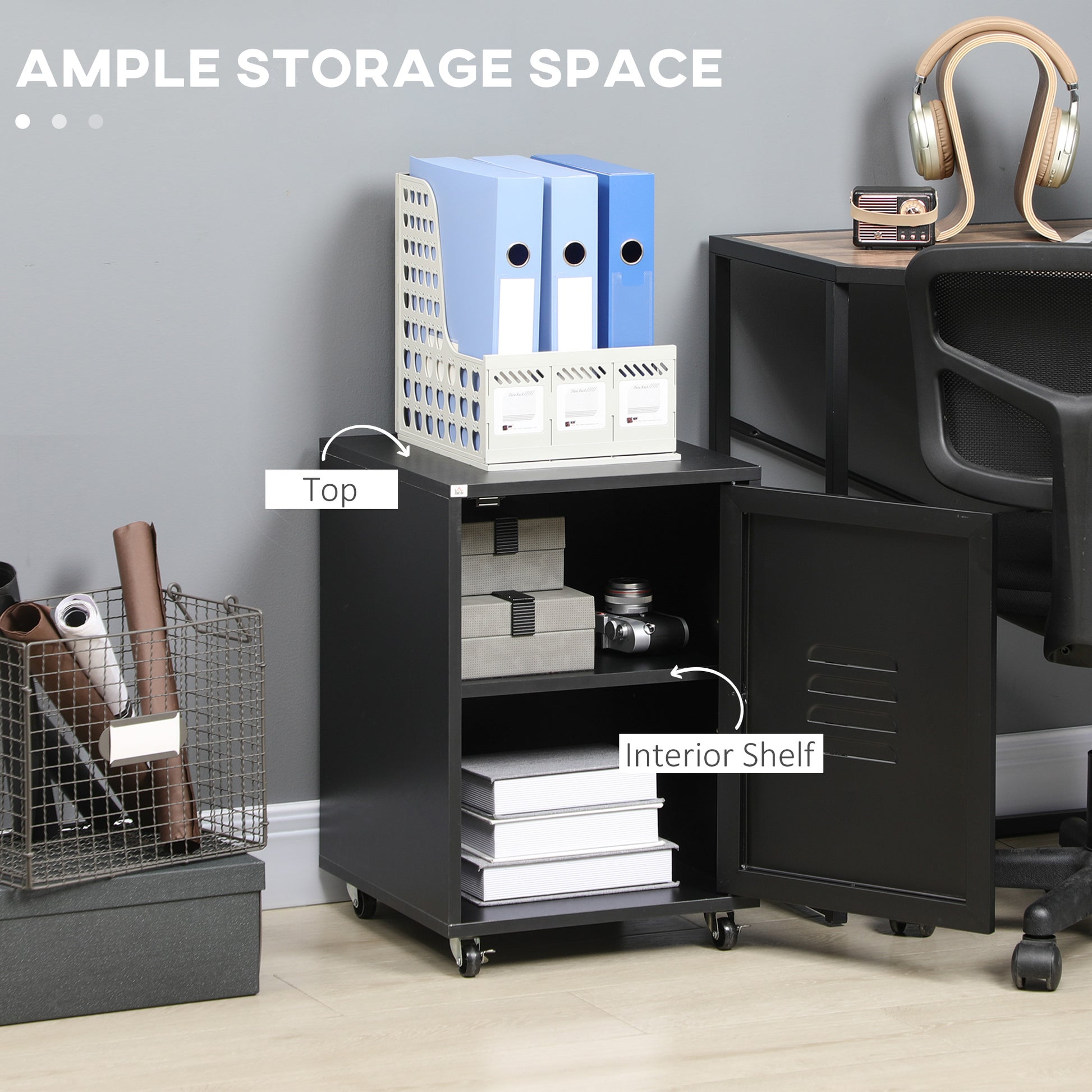 HOMCOM Rolling Metal Storage Locker Cabinet, Industrial Mobile Lockable Cabinet with Adjustable Shelf and Wheels for Home Office Living Room, Black
