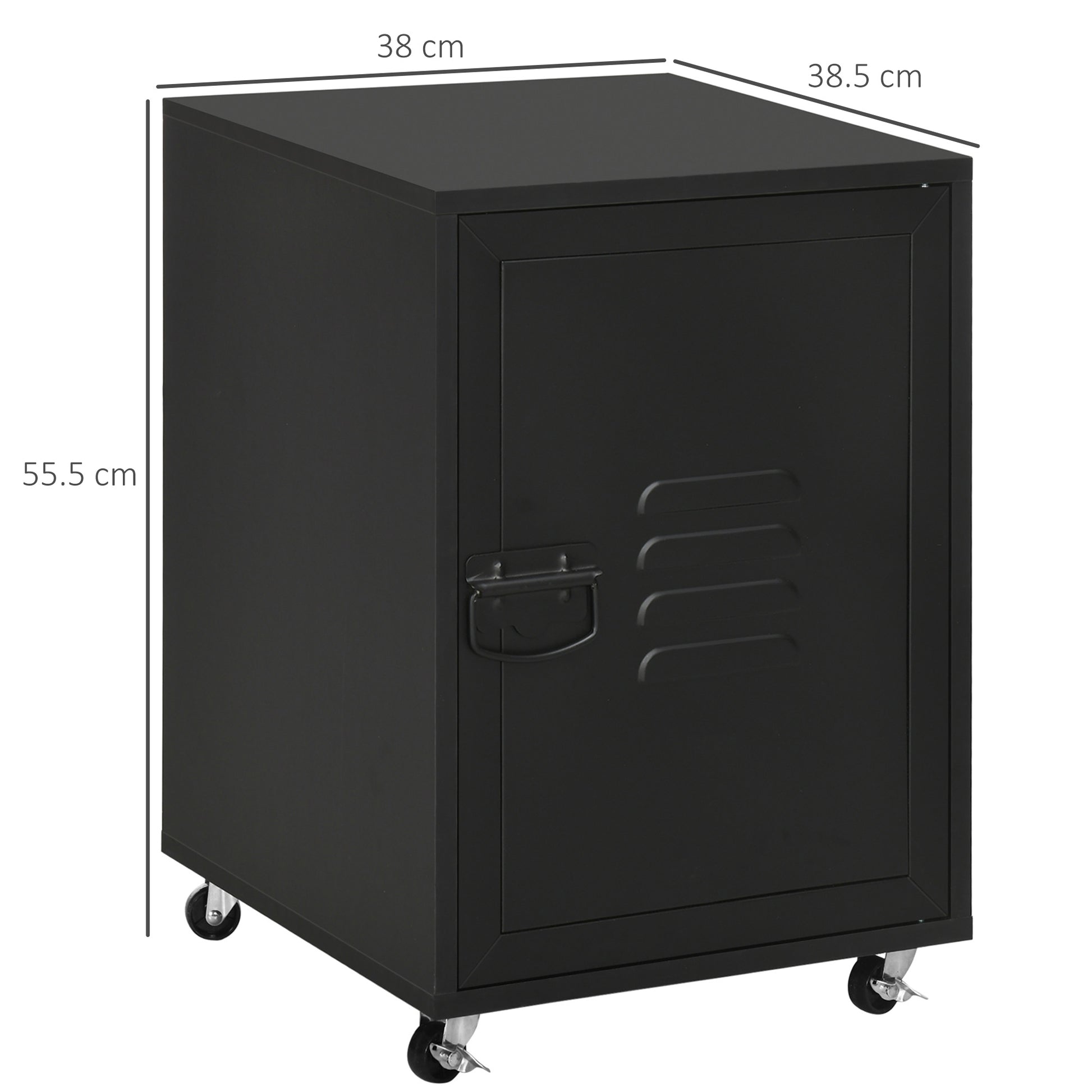 Pure industrial edge for your home or office - this HOMCOM cabinet is cool and quirky. It's a great piece to use as a nightstand, office cabinet or side table, for those looking to do it different this season and beyond. The structure, made from particle board is durable; fitted with a metal door to keep inside guarded. Front air vents for freshness inside. Handle on the front to open the door easily. Completed with four wheels to move around easily.