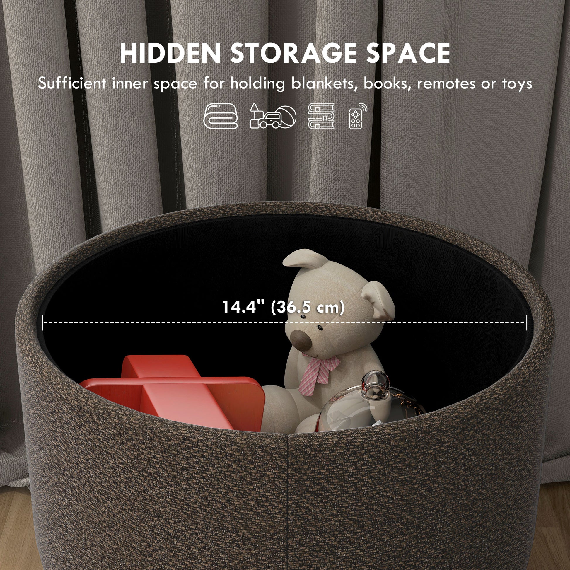 HOMCOM Round Ottoman Stool with Storage, Linen Fabric Upholstered Foot Stool with Padded Seat, Hidden Space and Wood Legs