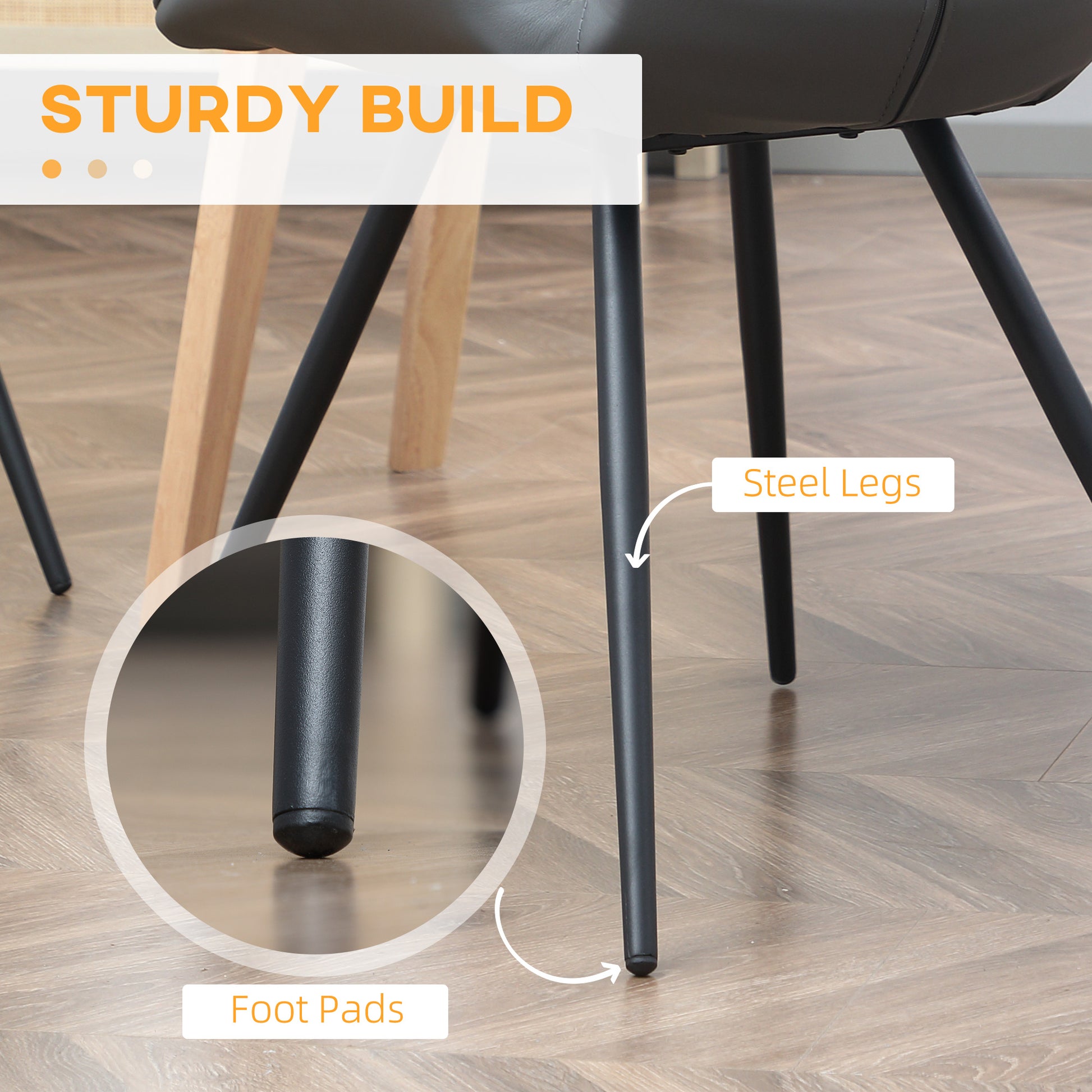 HOMCOM Set of 4 Dining Chairs, Kitchen Chairs with Metal Legs, PU Leather Seat and Backrests, Grey