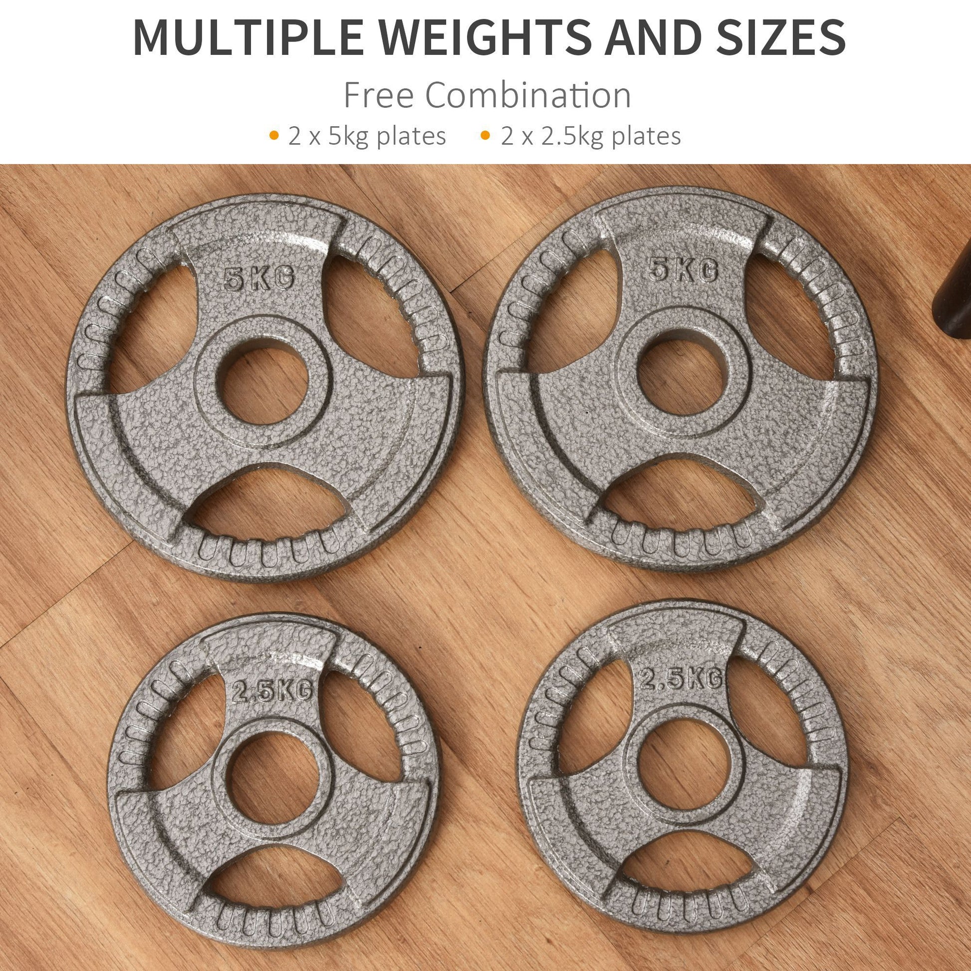HOMCOM Set of 4 Weight Plate for 2 inch/5cm hole Dumbbell Handle Bar 15kg Dumbbell Plates Barbell Weight 2 x 5kg, 2 x 2.5kg
