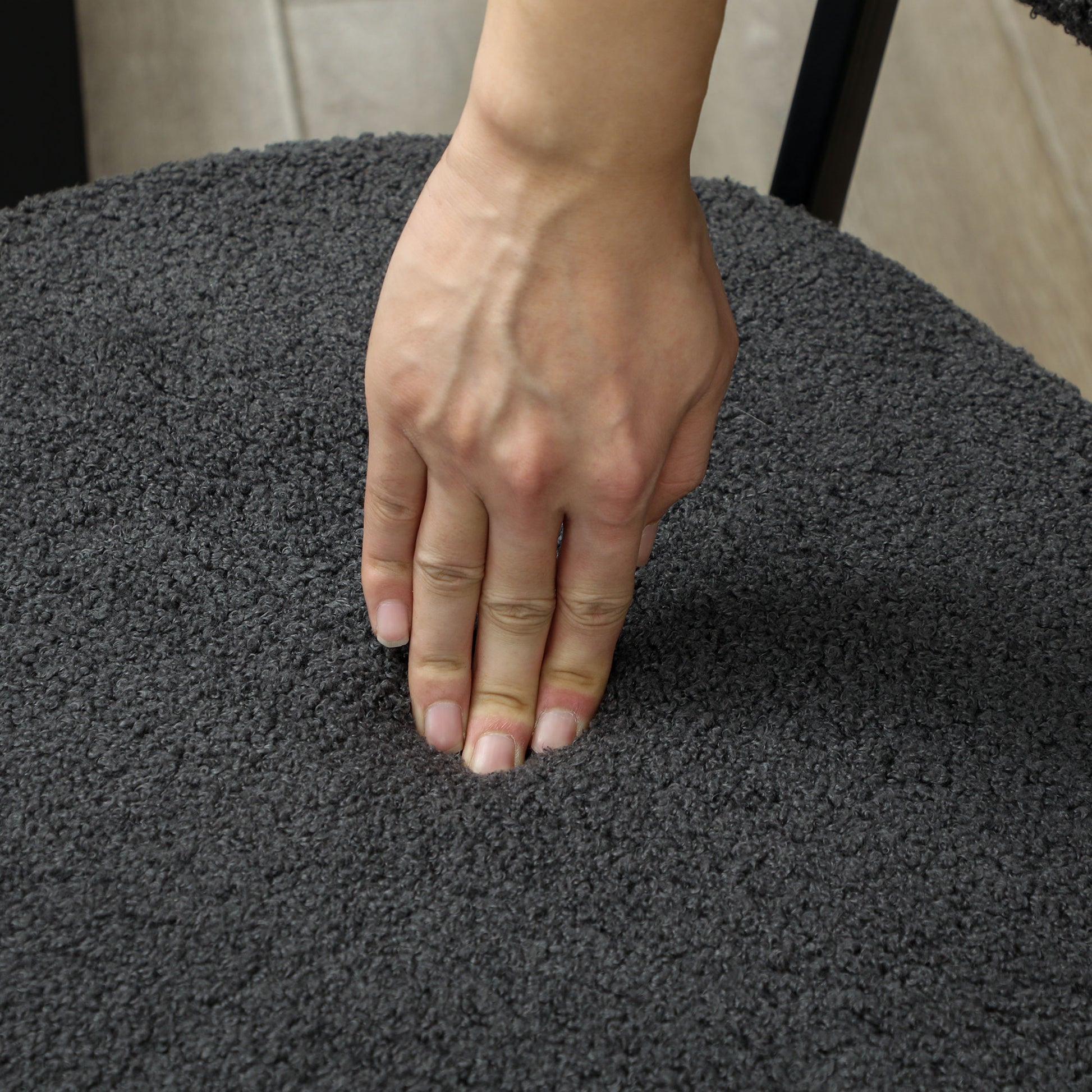 - Fleece-feel upholstery, in a boucle finish for a soft finishing touch