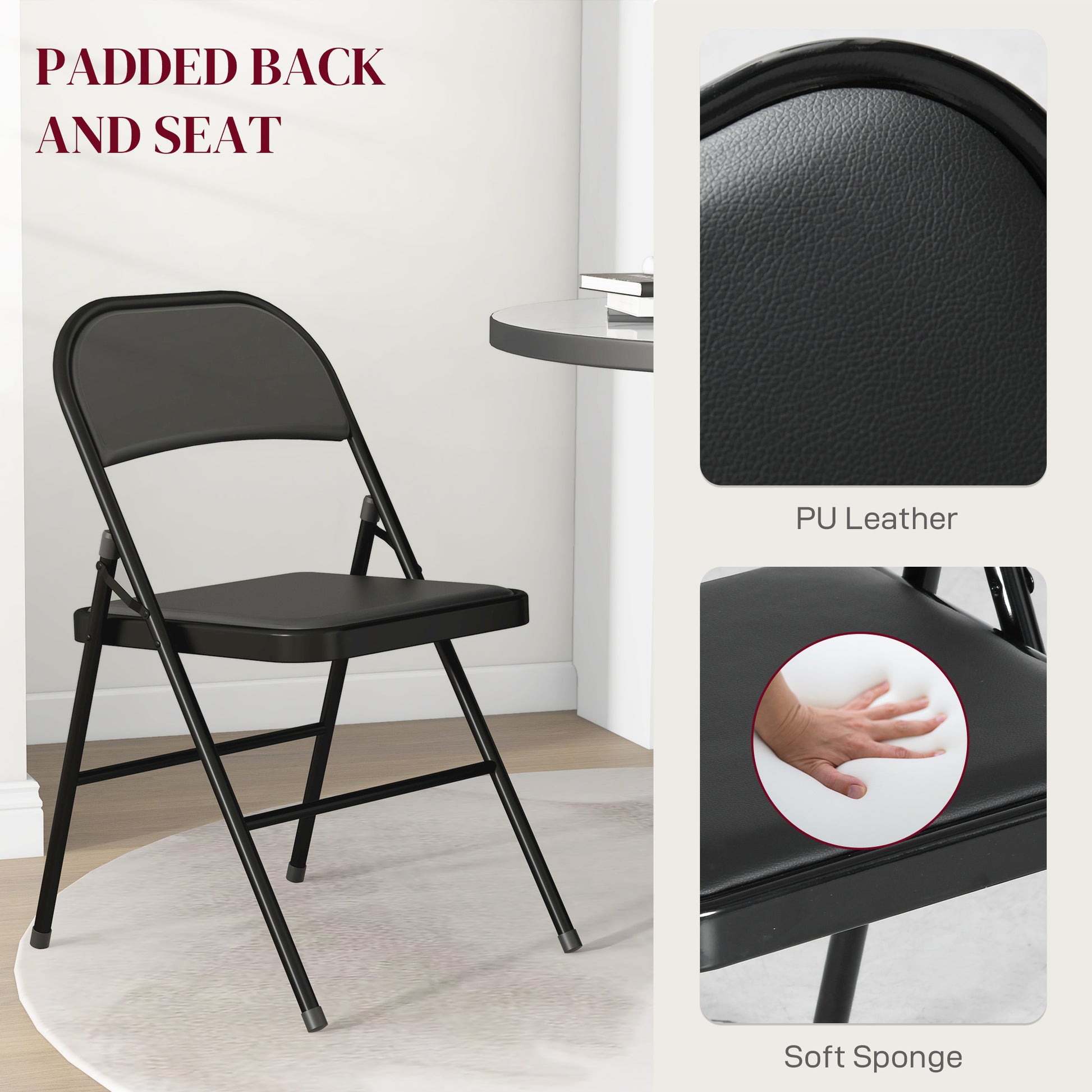 HOMCOM Set of Two Cushioned Folding Chairs - Black