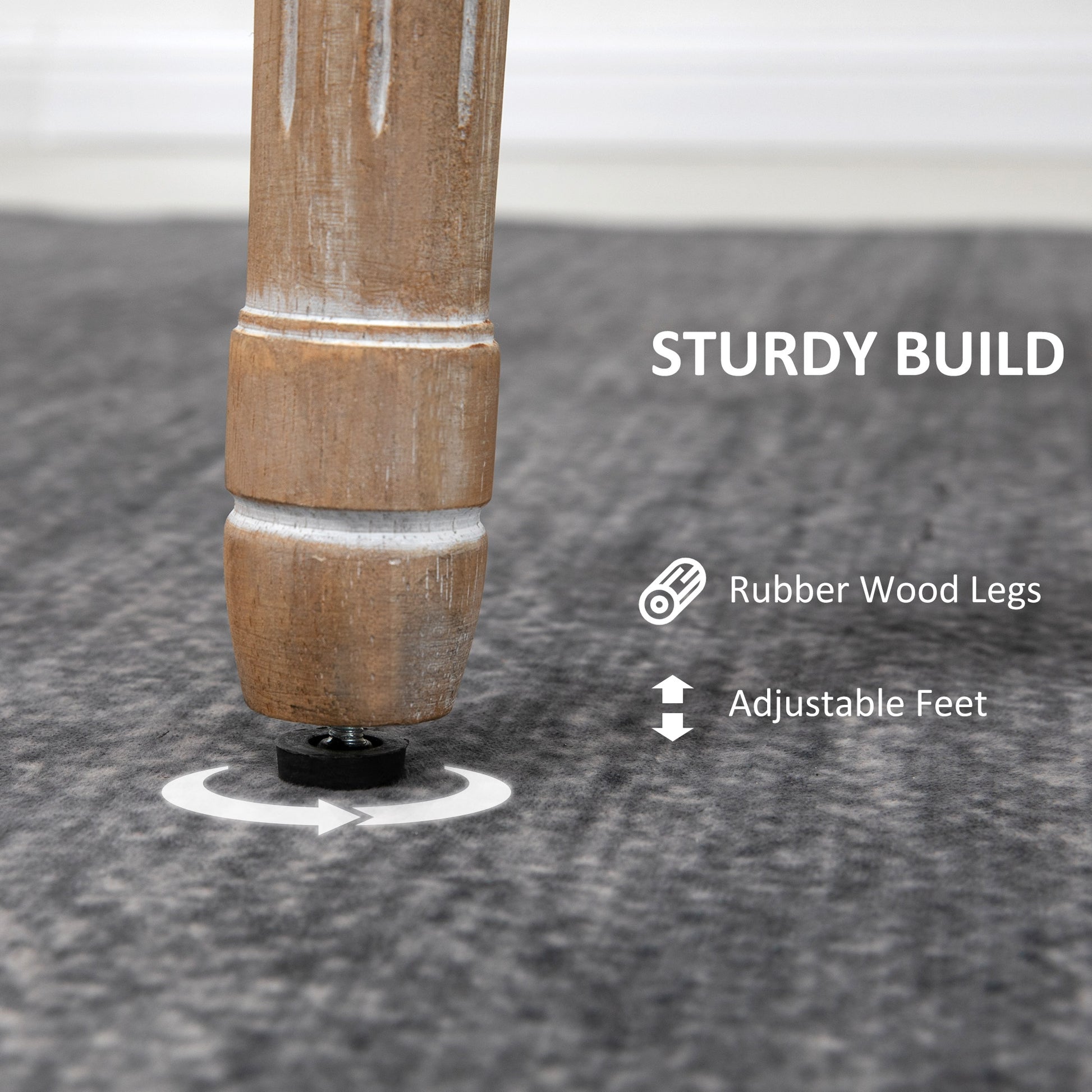 French inspired elegance for the home, with these two HOMCOM dining room chairs. Both frames are made from wood for strength, with the oval backs and fluted legs adding to the look. The thick sponge back and seat panels keep you comfortable, covered with smooth linen-look upholstery. Complete with adjustable feet for balance.