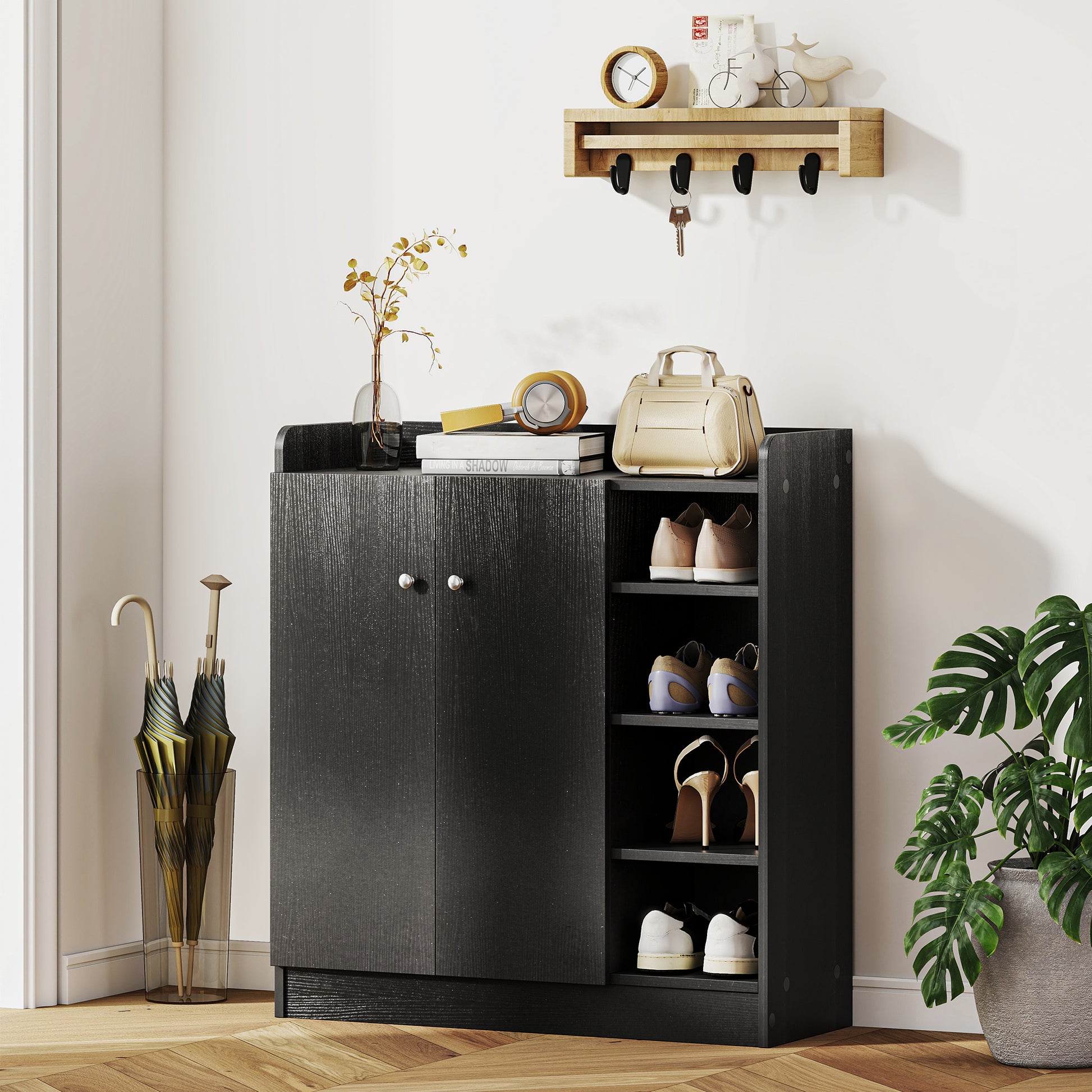 HOMCOM Shoe Storage Cabinet with Adjustable Shelves - Black