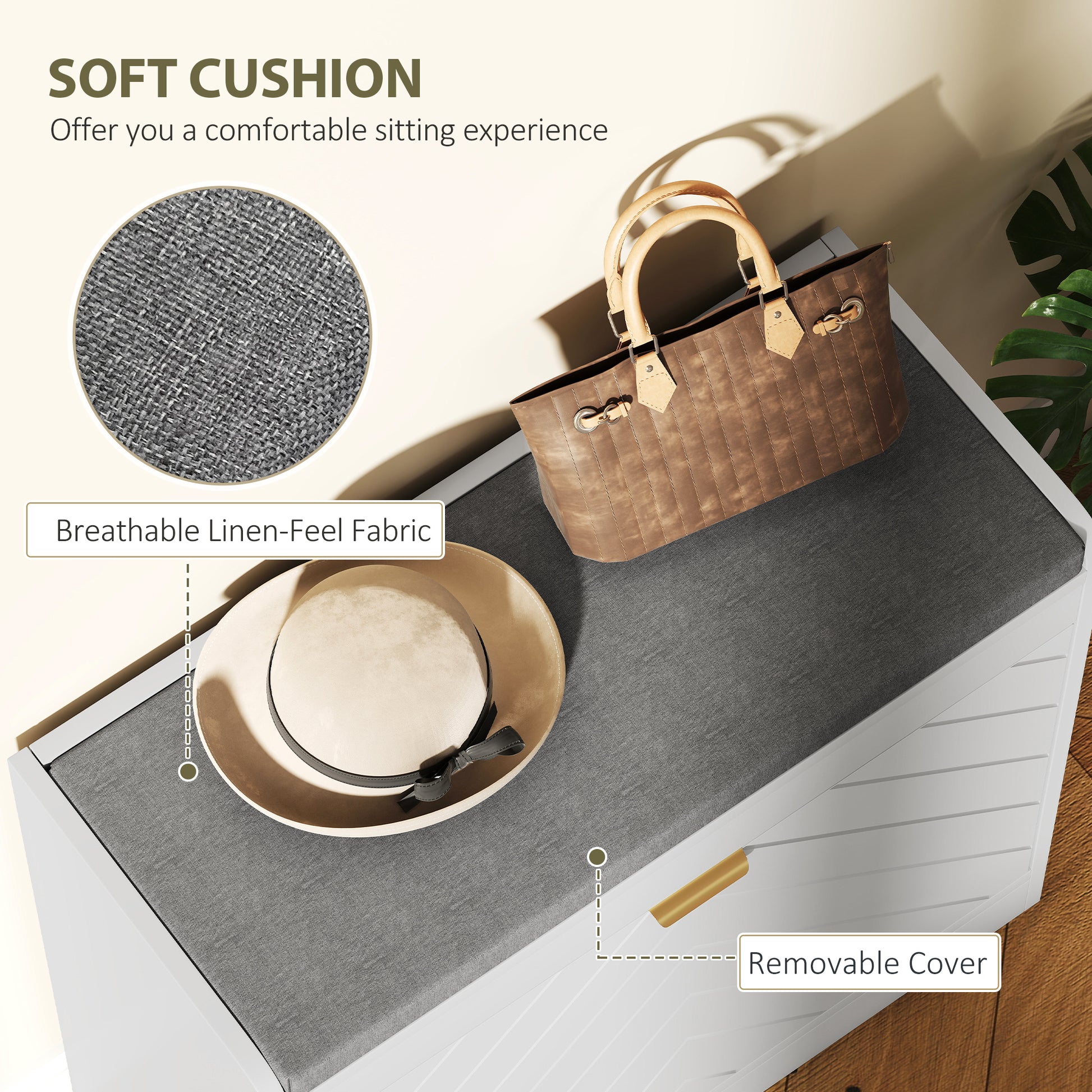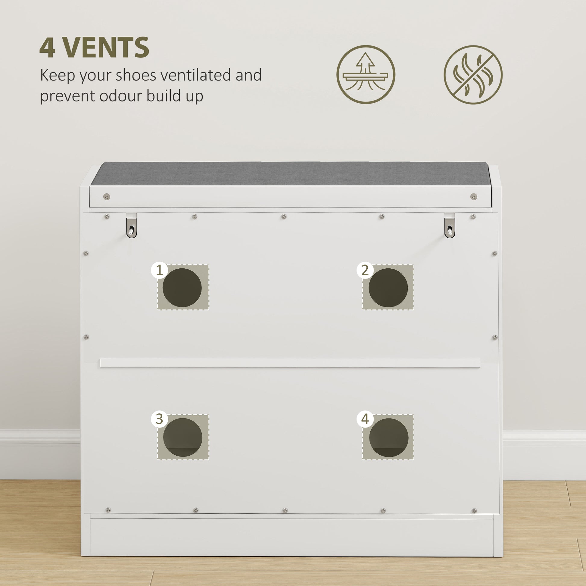 HOMCOM Shoe Storage with Seat, Upholstered Entryway Bench, Shoe Bench with 1 Flip Drawer and 4 Vents for 5 Pairs of Shoes
