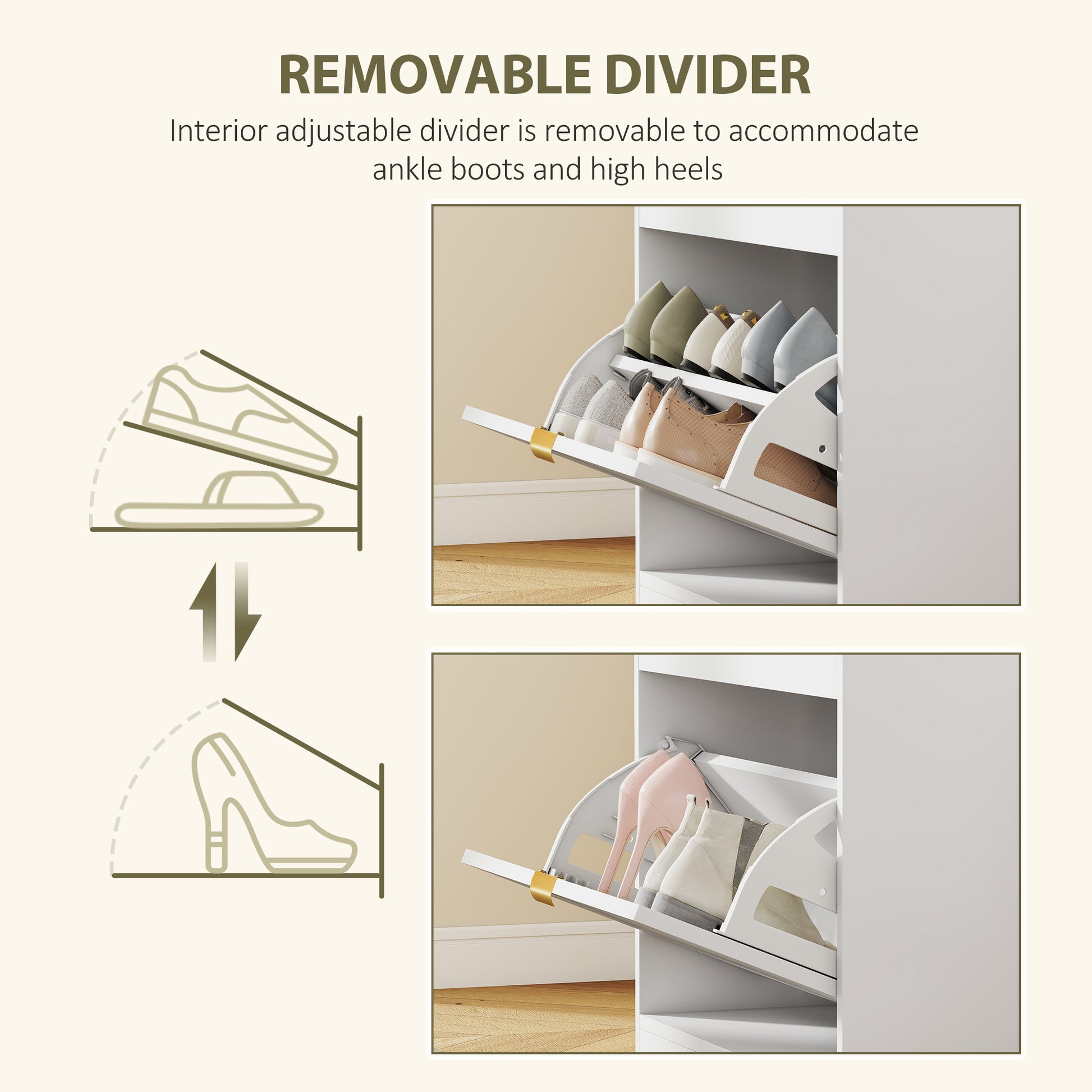 Tired of messy hallways and scattered shoes? This HOMCOM shoe bench brings order and style to your home. With a flip drawers for up to five pairs (UK 9.5 max) and adjustable shelves for boots, the shoe cabinet keeps everything tidy. The padded seat and gold-tone handles add comfort and elegance to your entryway.