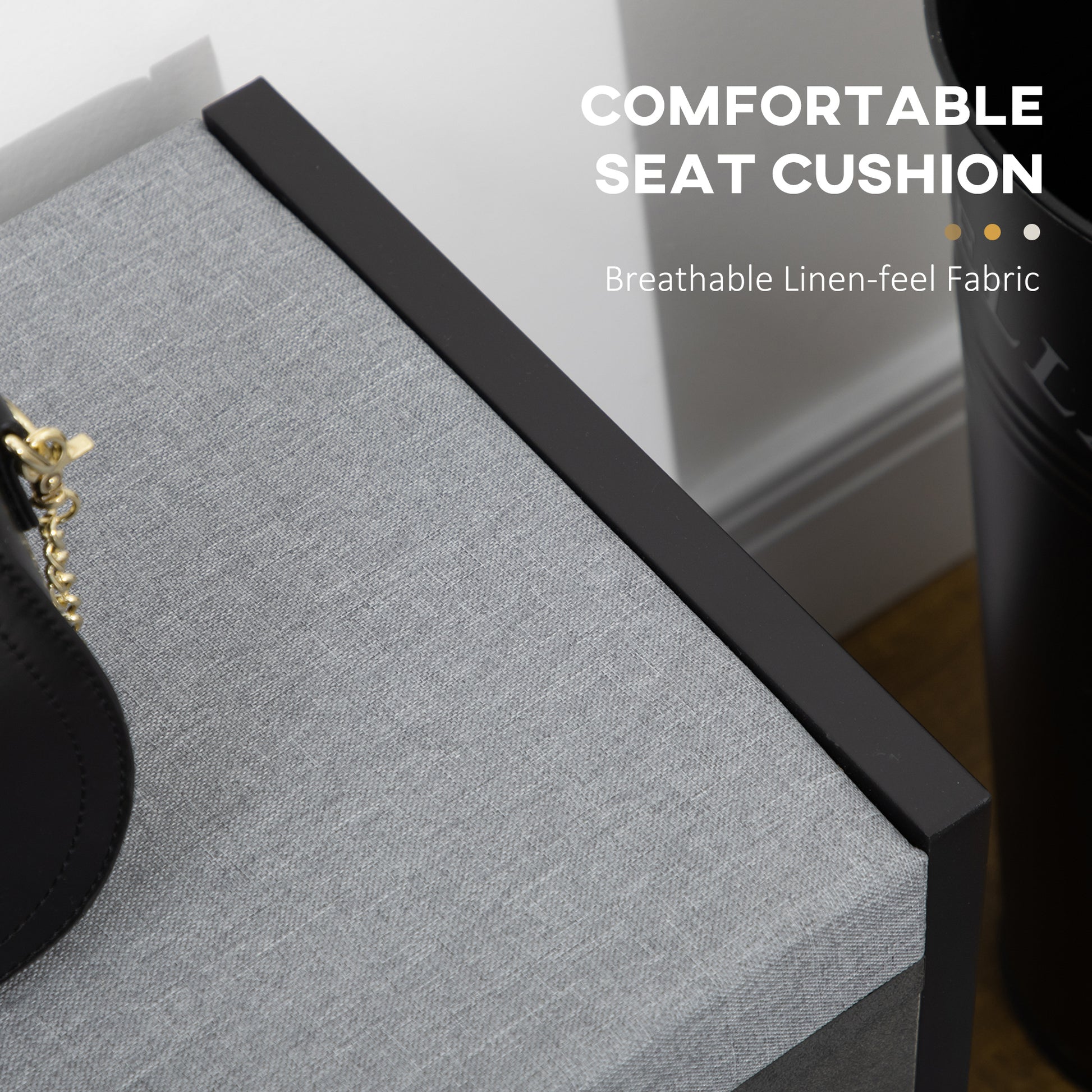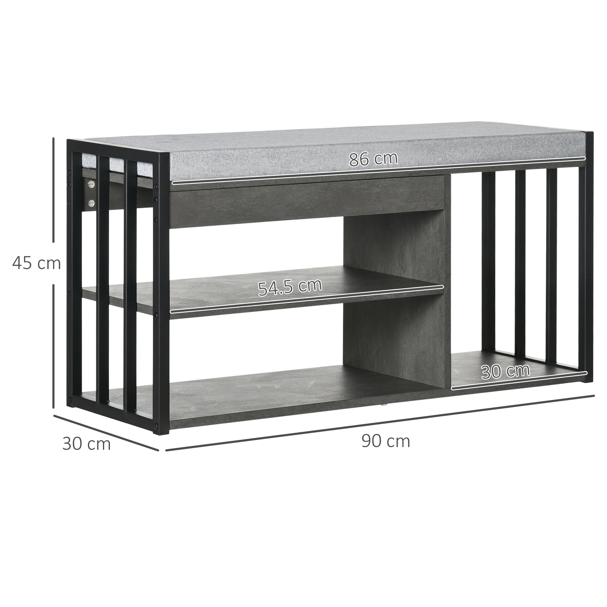 Organise footwear with our HOMCOM shoe hallway bench. With two open shelves, there's room for six pairs of your shoes, with a tall side shelf for boots; it's great for personal use. It features a top padded seat - sit comfortably for a moment as you put shoes on and take them off. With a steel frame, this shoe storage with seat has a strong, supportive core. Suitable for everyday.