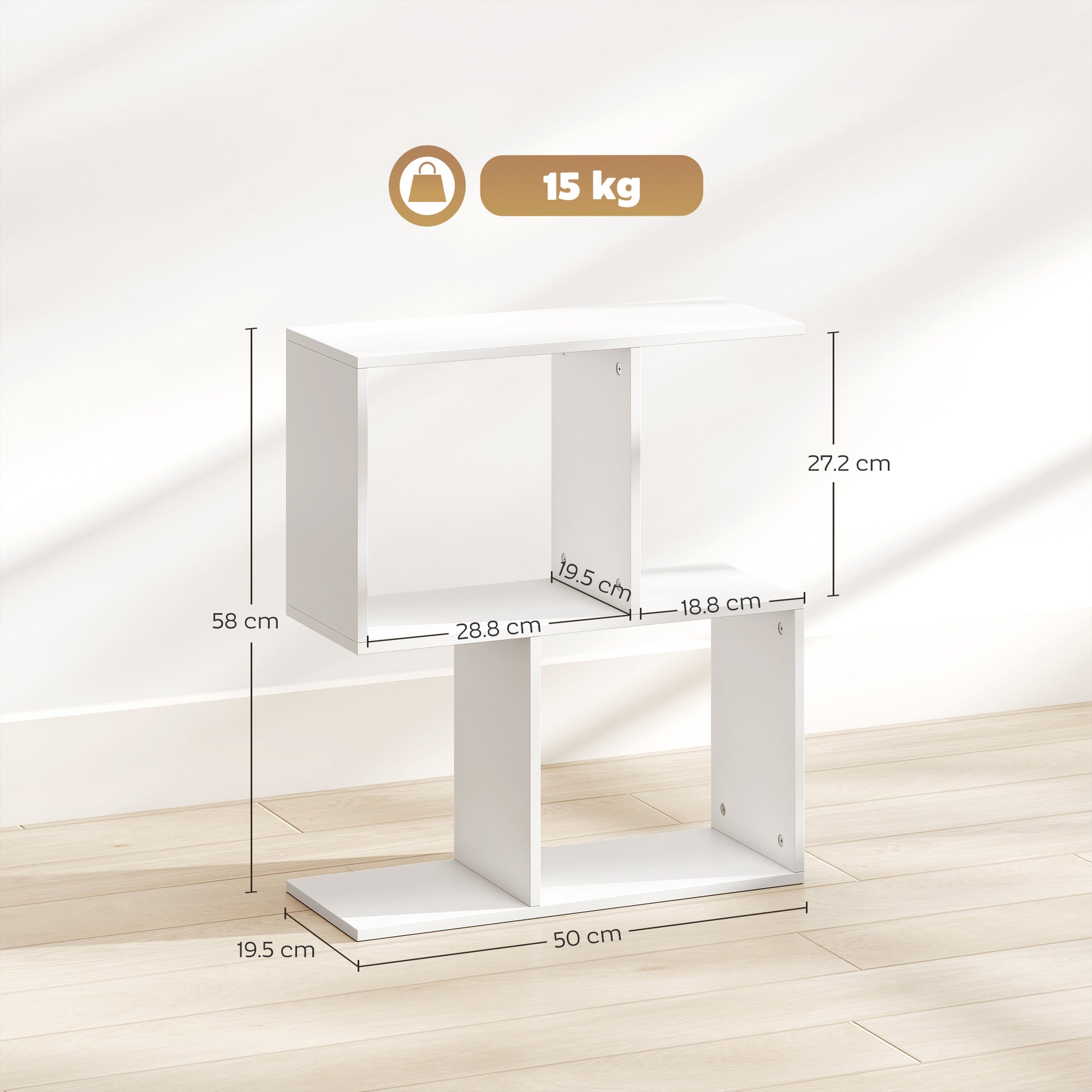 HOMCOM Side Table, Narrow End Table with Storage Shelves, S-Shaped, 3-Tier, 50W x 19.5D x 58H cm, White