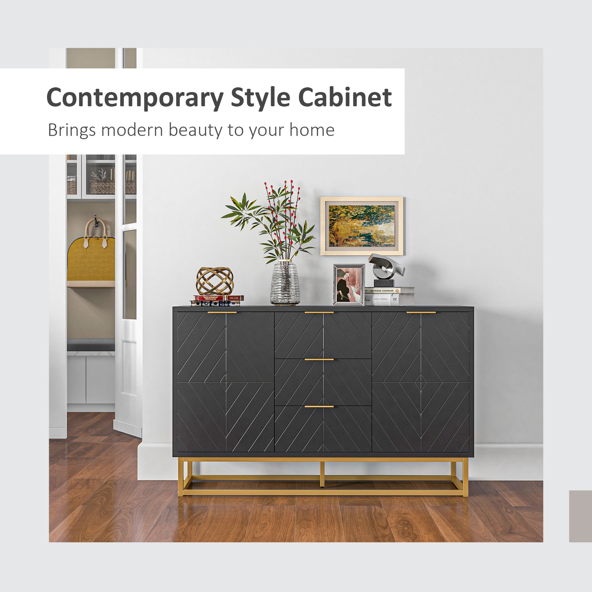 HOMCOM Sideboard with 3 Drawers and Adjustable Shelves for Living Room - Black