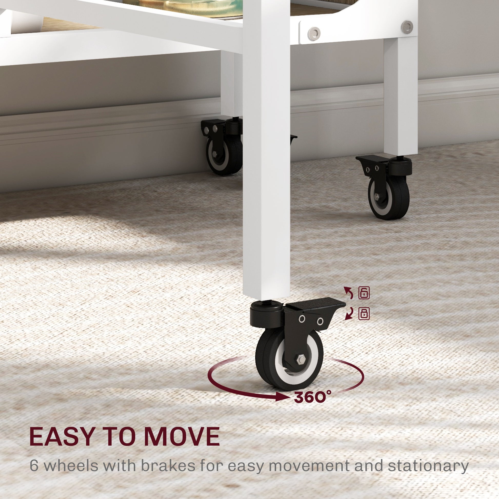 Make large unused tables at home a thing of the past. Choose this folding dining table from HOMCOM for an option that saves space when needed. Crafted into an expandable design, where both sides lift from the bottom; it creates extra surface room while dropping back down into a compact unit effortlessly. It comes with a middle shelf for discreet storage and six wheels to move easily. Completed with brakes.