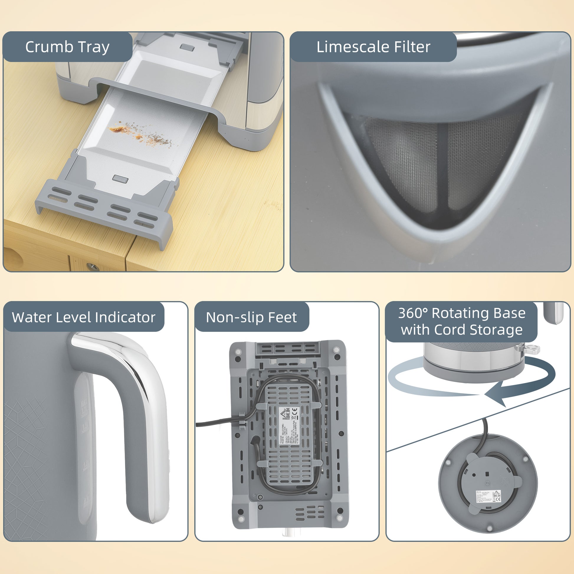 HOMCOM Sleek Textured Kettle and Toaster Set - Grey