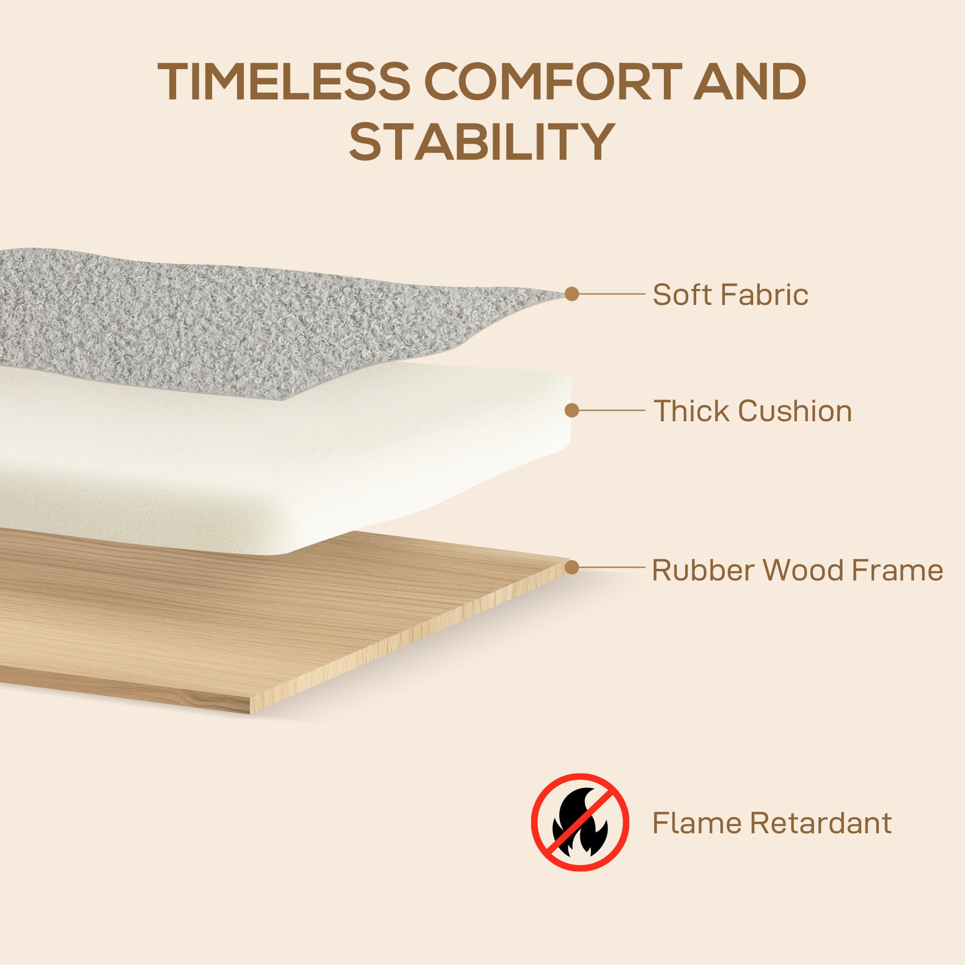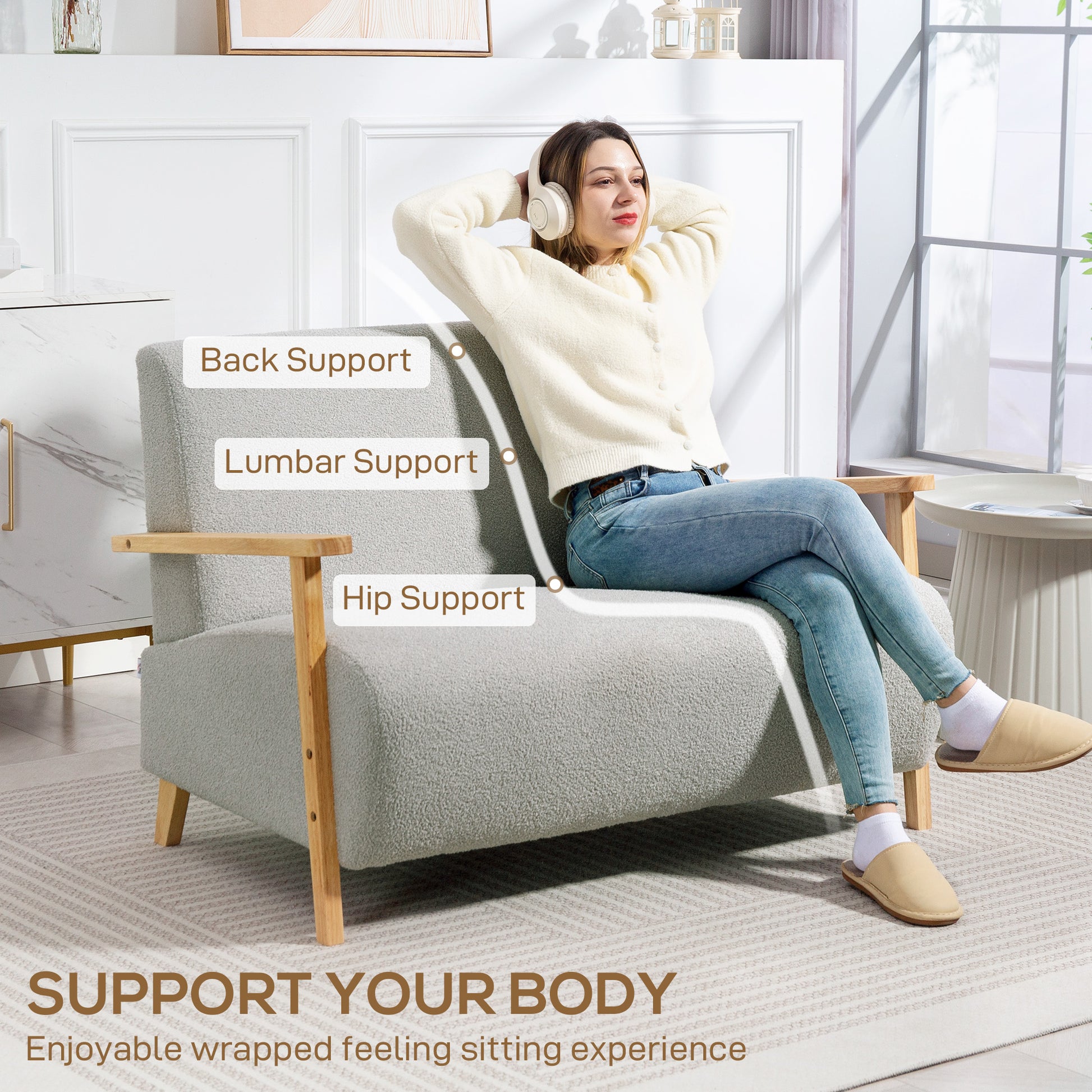 Discover the charm of our HOMCOM loveseat sofa, blending Nordic style with the cosiness of sherpa fabric. This small sofa features thick seat and back padding for great comfort, all while maintaining a compact footprint for snug spaces, suitable for small spaces. Rubber wood armrests and legs add a touch of elegance, making it a stylish addition to any living room or bedroom.