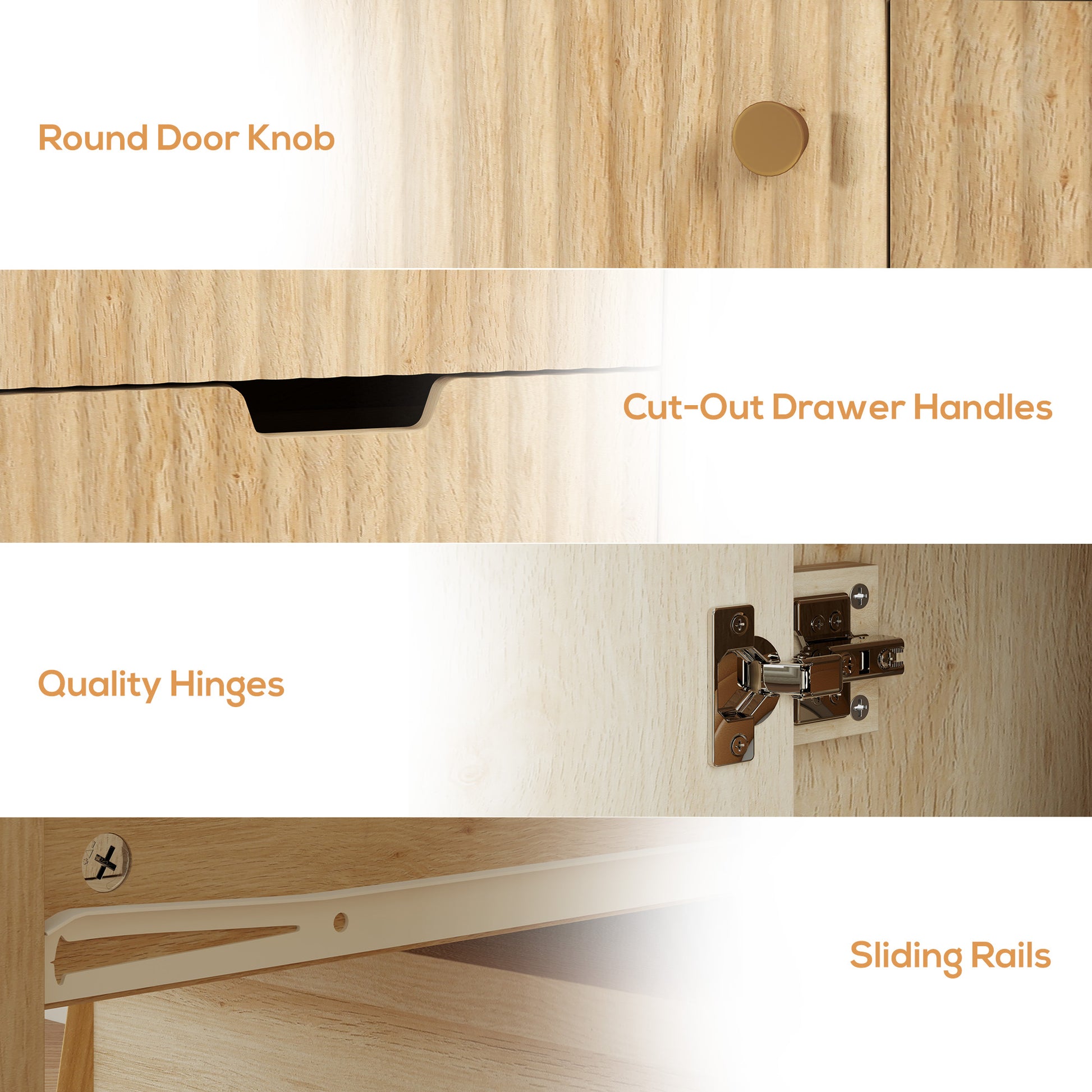HOMCOM Small Sideboard with Drawers and Adjustable Shelf - Nature Wood Finish