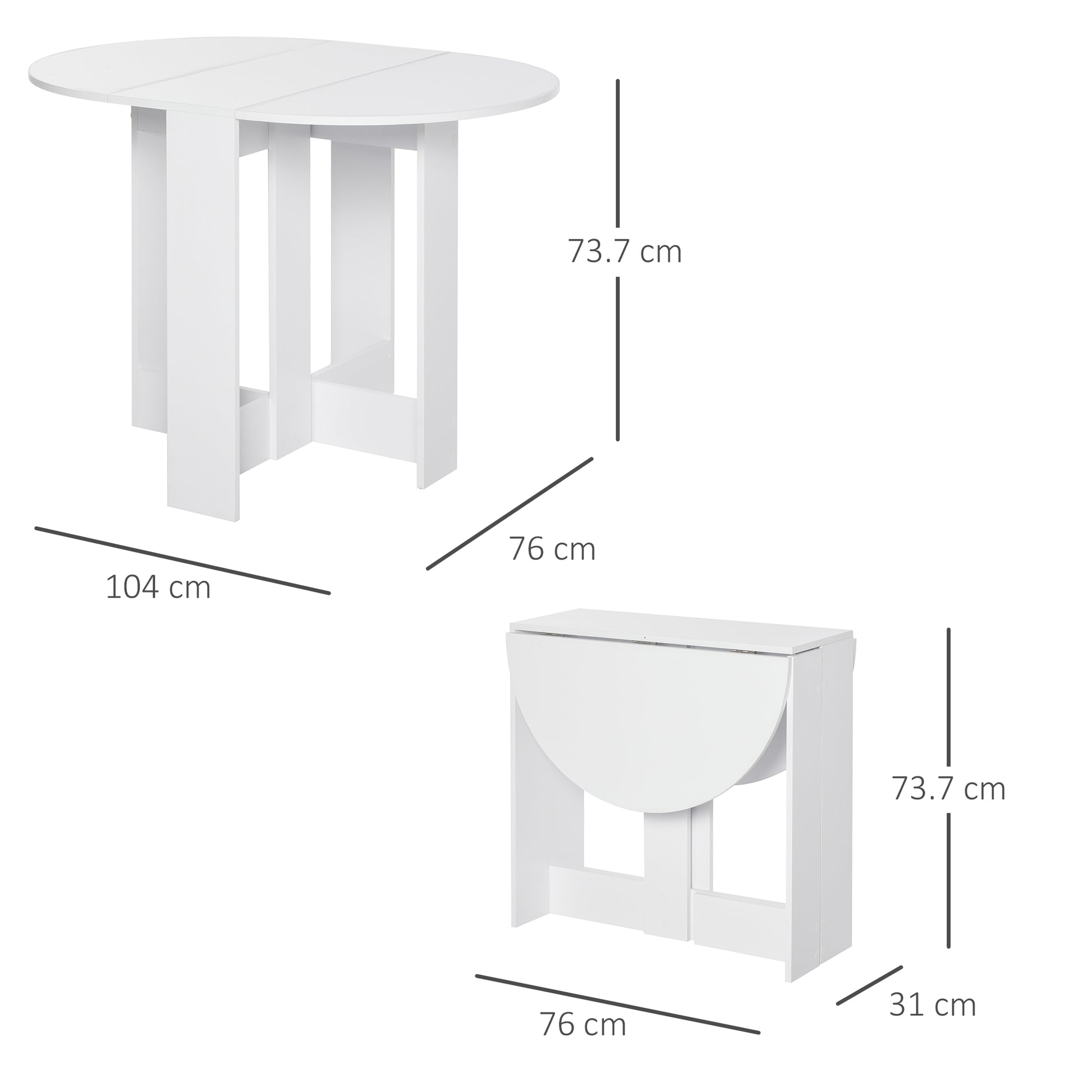 HOMCOM Space-saving Drop Leaf Table, Folding Dining Table for Small Space, Kitchen, Dining Room, White