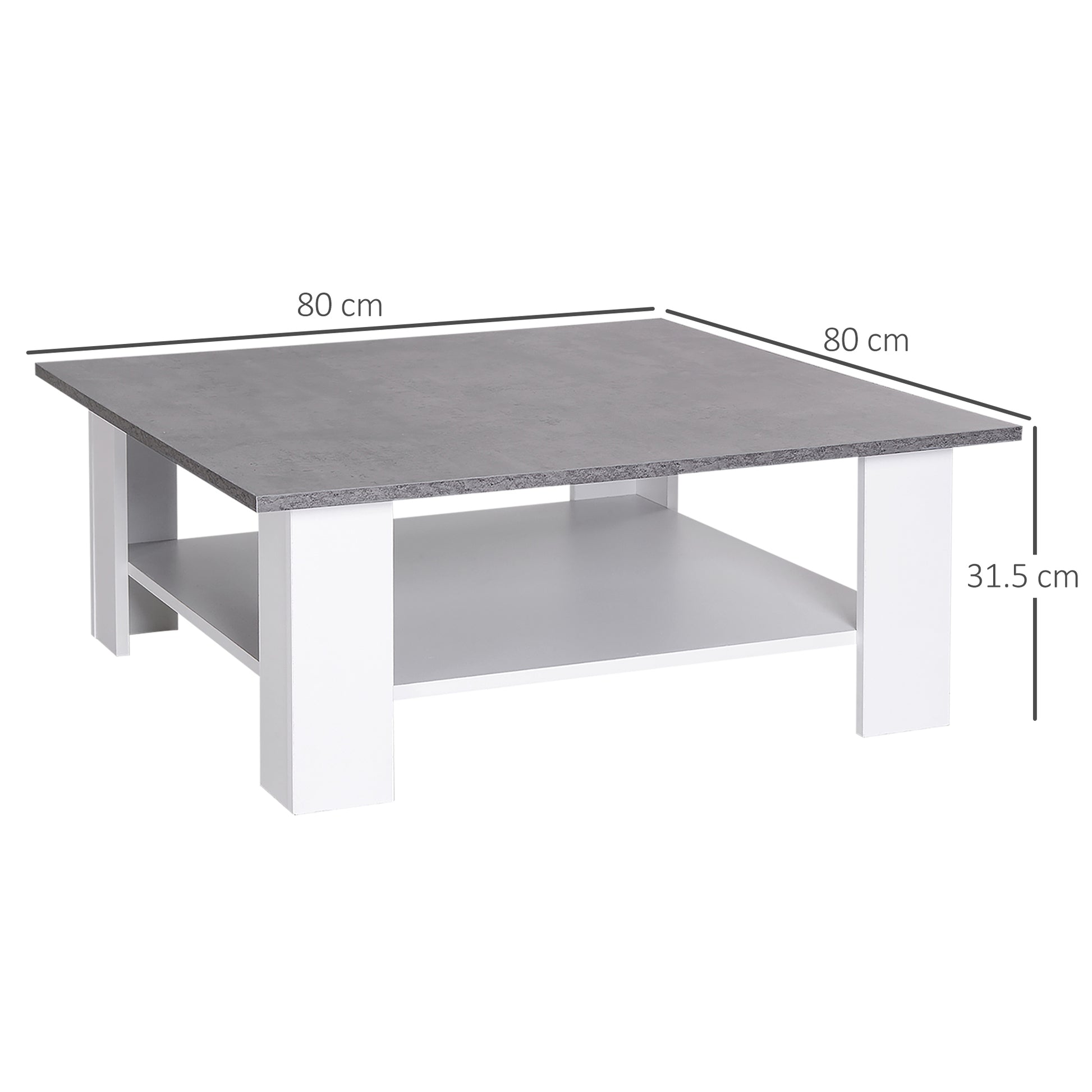 HOMCOM Square Coffee Table, Wooden Coffee Table with Storage, Cocktail Center Tea Table for Home Office, 80W x 80D x 31.5Hcm, Grey and White